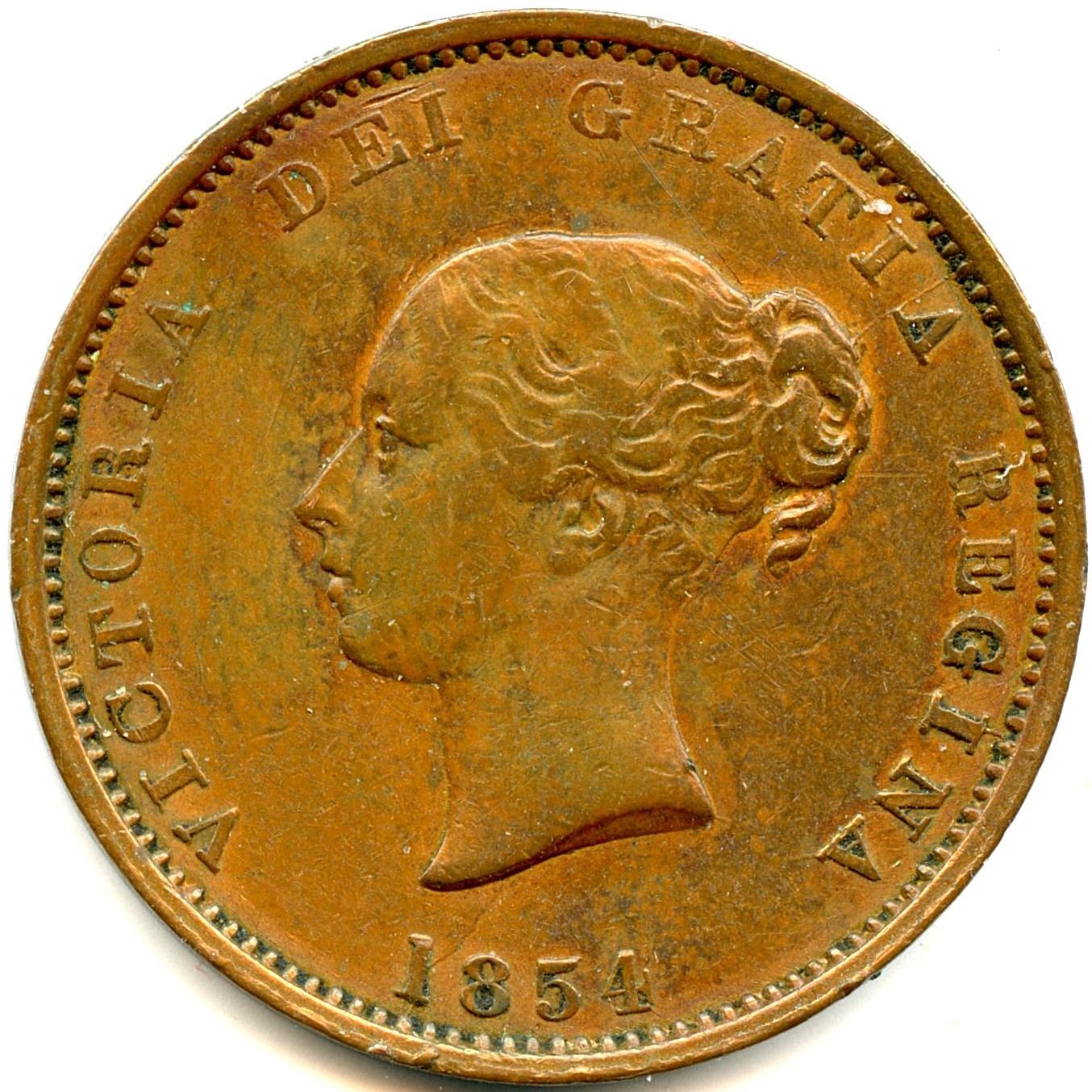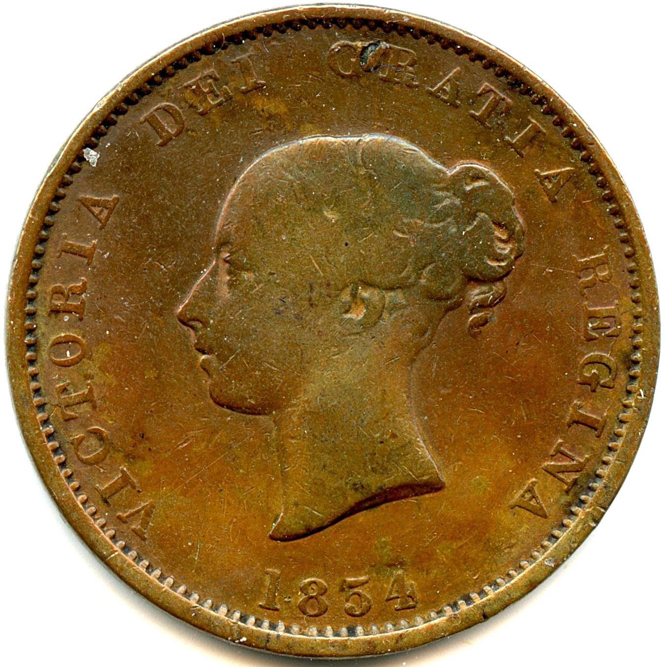 Co 31, 7.78g, die crack rim through I in Gratia to coil of hair, die crack rim through G in Regina to neck, F; Co. 32, 7.91g, F Cleaned; Co. 34, 7.84g, die crack to top of A in Gratia, VG; Co. 34, 7.86g, die crack rim through A in Gratia to coil of hair, die crack rim through 1 to bottom of neck, die crack rim to bottom of C in Victoria continuing at bottom of TORIA to DEI, die crack rim missing the I in DEI to top of forehead, F Cleaned; Co. 35, 7.98g, VF Cleaned; Co. 35, 8.05g, die crack rim between A and R to coil of hair, F+; Co. 35, 7.88g, die crack rim between A and R to coil of hair, die crack rim to O in Victoria continuing to the bottom of the T and R, VF+; Co. 36, 7.83g, several die crack affecting top and bottom of most letters on reverse, right gut to mainmast missing, VF+ Cleaned; Co. 36, 7.89g, several die crack affecting top and bottom of most letters on reverse, right gut to mainmast missing, VF Cleaned; Co. 37, 7.74g, F; Co. 37, 7.63g, very faint die crack rim to in Date, G; Co. 38, 7.84g, VF; Co. 38, 7.78g, VF; Co. 39, die crack rim to bottom of 1 continuing to bottom of neck,, VG; Co. 39, die crack rim to bottom of 1 continuing to bottom of neck, die crack rim to top of I in Regina, die cracks affecting several letters on reverse, f+; Co. 40, 7.72g, die crack from H in Half through period to N in New, F; Co. 41, 7.72g, F; Co. 41, 7.72g, VF; Br 912, CH-1B, 1854 Half Penny, 7.91g, die crack rim to E in DEI, F. 19pcs. Note: this lot is part of The Harry N. James Collection.