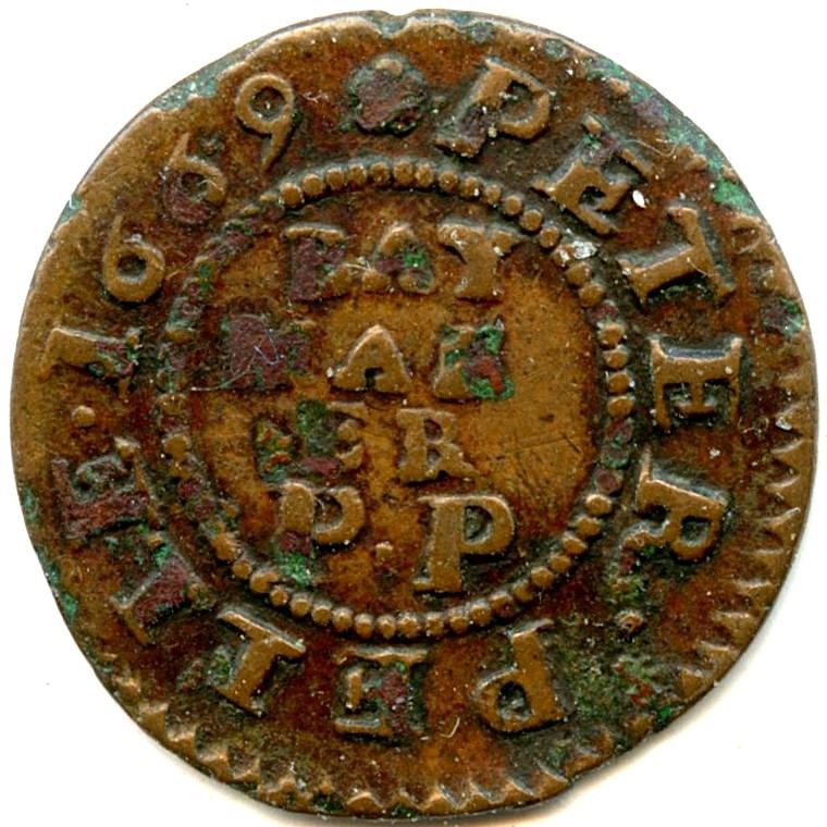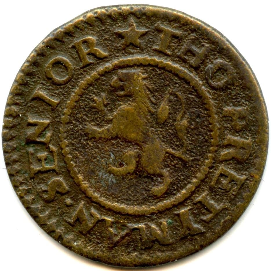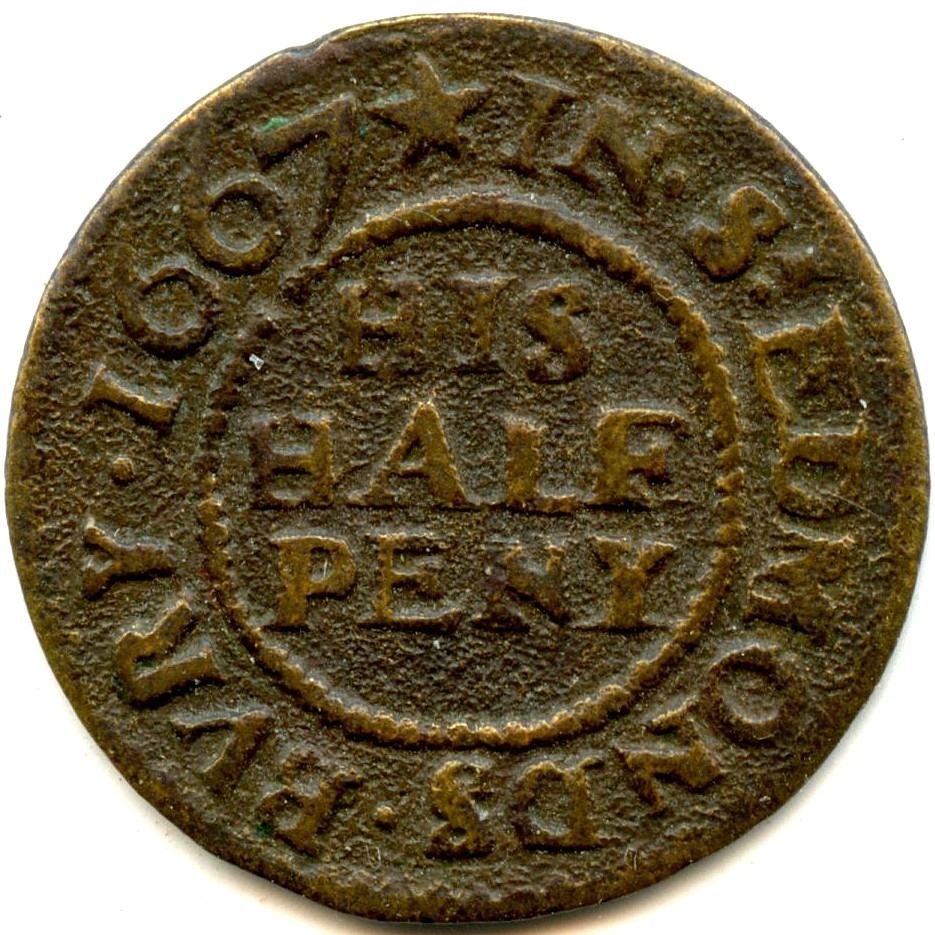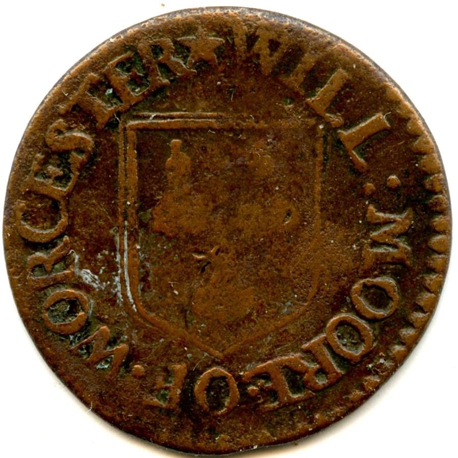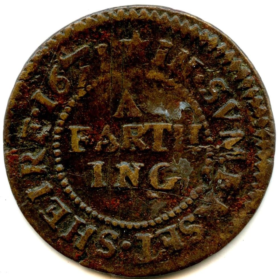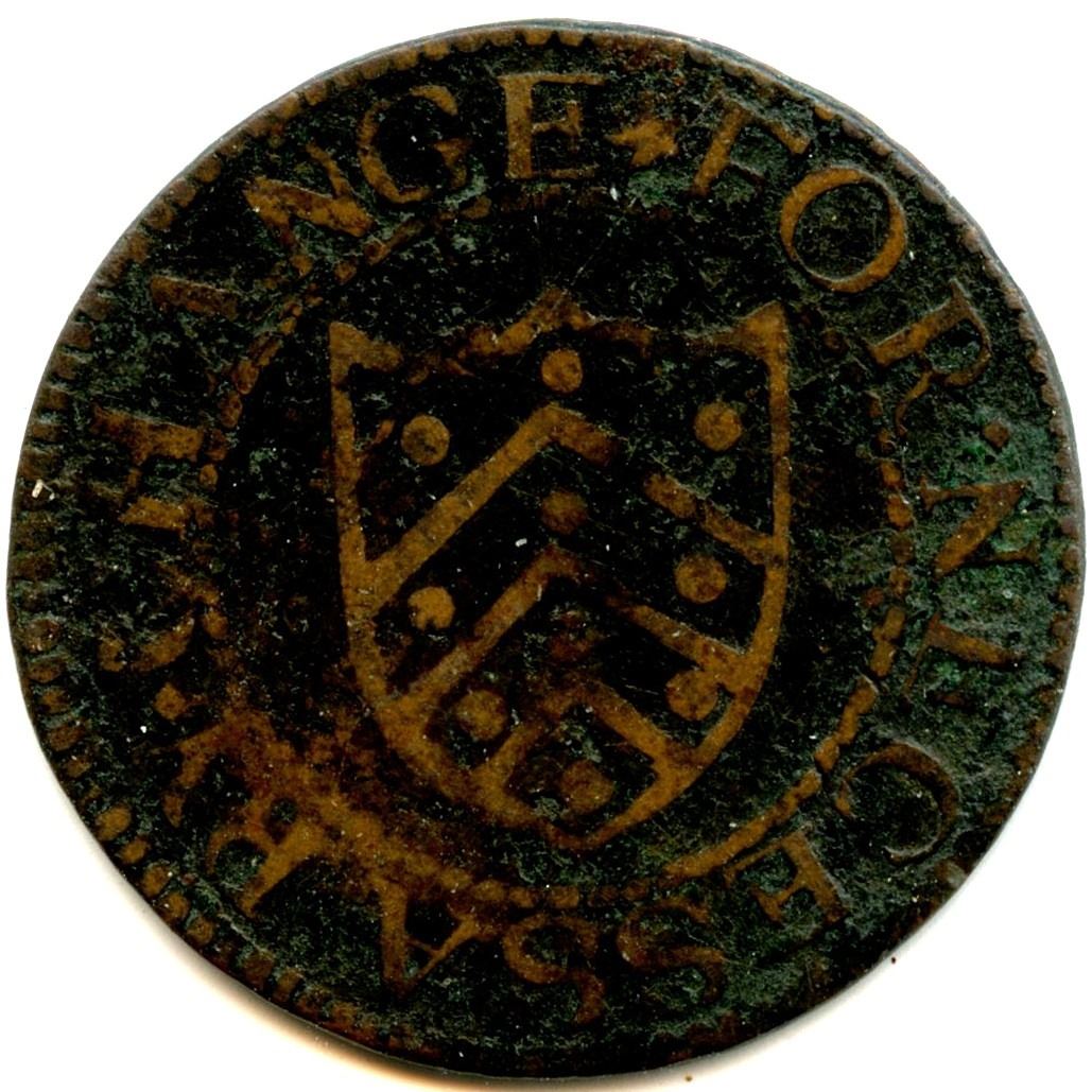 Cambridge, 1656, Peter Collins, Farthing, F, 0.93g, 16mm; Essex, Colchester, 1669, Peter Pelle, Farthing, VF, 0.88g, 16mm; Gloucestershire, Glouster, Thomas Cooke, Farthing, F, 0.83g, 16mm; Kent, Biddenden, 1658, Alexander Holmsey, Farthing, F+, 0.75g, 16mm; Kent, Canterberye, Will Terrey, Farthing, VG+, 0.93g, 16mm; Kent, Margate, 1669, Joseph Jewell, ½d, G Corrosion, 2.44g, 21mm; Kent, Rochester, 1664, Gilbert Young, Farthing, 0.95g, 15.85mm; Norfolk, Yarmouth, 1654, Benjamin Wallton, Farthing, VF, 1.41g, 16mm; Oxfordshire, Wallingtford, 1669, William Eliot, ½d, F, 1.81g, 21mm; Suffolk, St. Edmonsbury, 1667, Tho. Prettyman, ½d, F Corrosion. 2.00g, 20mm; Worcestershire, Worcester, 1664, Will Moore, Farthing, F, 1.71g, 19mm; Withers 13, Hampshire, Andover, 1666, For Ye Poores Benefit, ½d, F, 1.81g, 20mm; Withers 133, Somerset, Frome, 1671, John Sanders, Farthing, F Scatches, 1.90g, 20mm; Middlesex, Holborn, Giles Baggs, Farthing, VG Corrosion, 1.65g, 20mm; Durham, Norton, Henry Fawler, Farthing, VG Corrosion, 0.96g, 16mm; Wiltshire, Sarum, 1666, Simon Rolfe, ½d, VG, 1.81g, 19mm; Gloucestershire, Gloucester, 1657, Lvke Novrse Maior, ½d, VG Corrosion, 2.50g, 22mm. 17pcs. Note: this lot is part of The Harry N. James Collection.