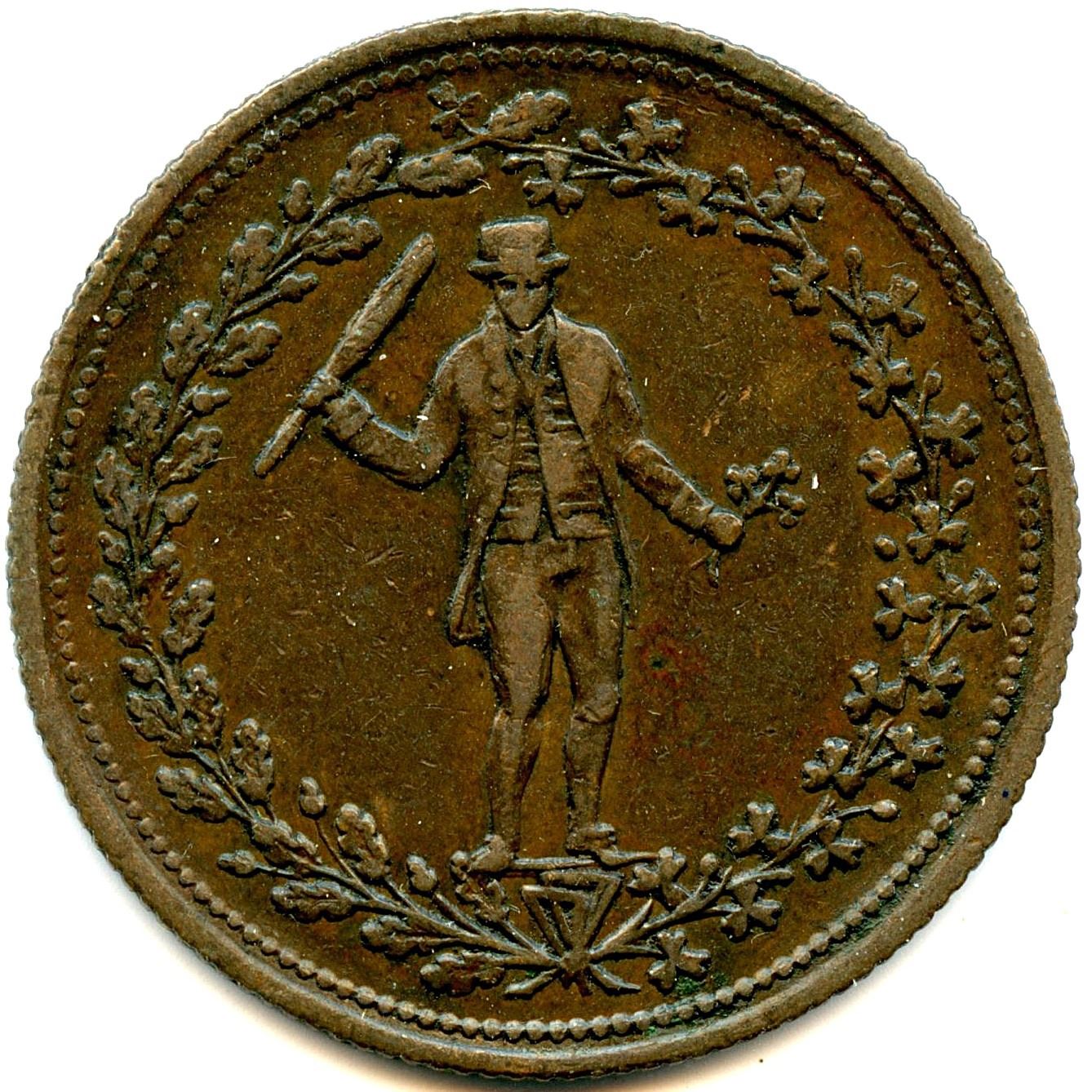 Br 966, CH-AM-1A4, ↑↑, 8.25g, F+; Br 983, CH-AM-3, ↑↓, 7.21g, VG; Br 1009, CH-AM-4, ↑↑, 6.80g, VF; Br 1013, CH-AM-5A1, Copper, ↑↑, 7.13g, VG Cleaned; Br 1013, CH-AM-5A1, Copper 89.61% cu 9.80% zn, ↑↑, 5.28g, VG; Br 993, CH-AM-6, ↑↓, VG. 6pcs. Note: this lot is part of The Harry N. James Collection.