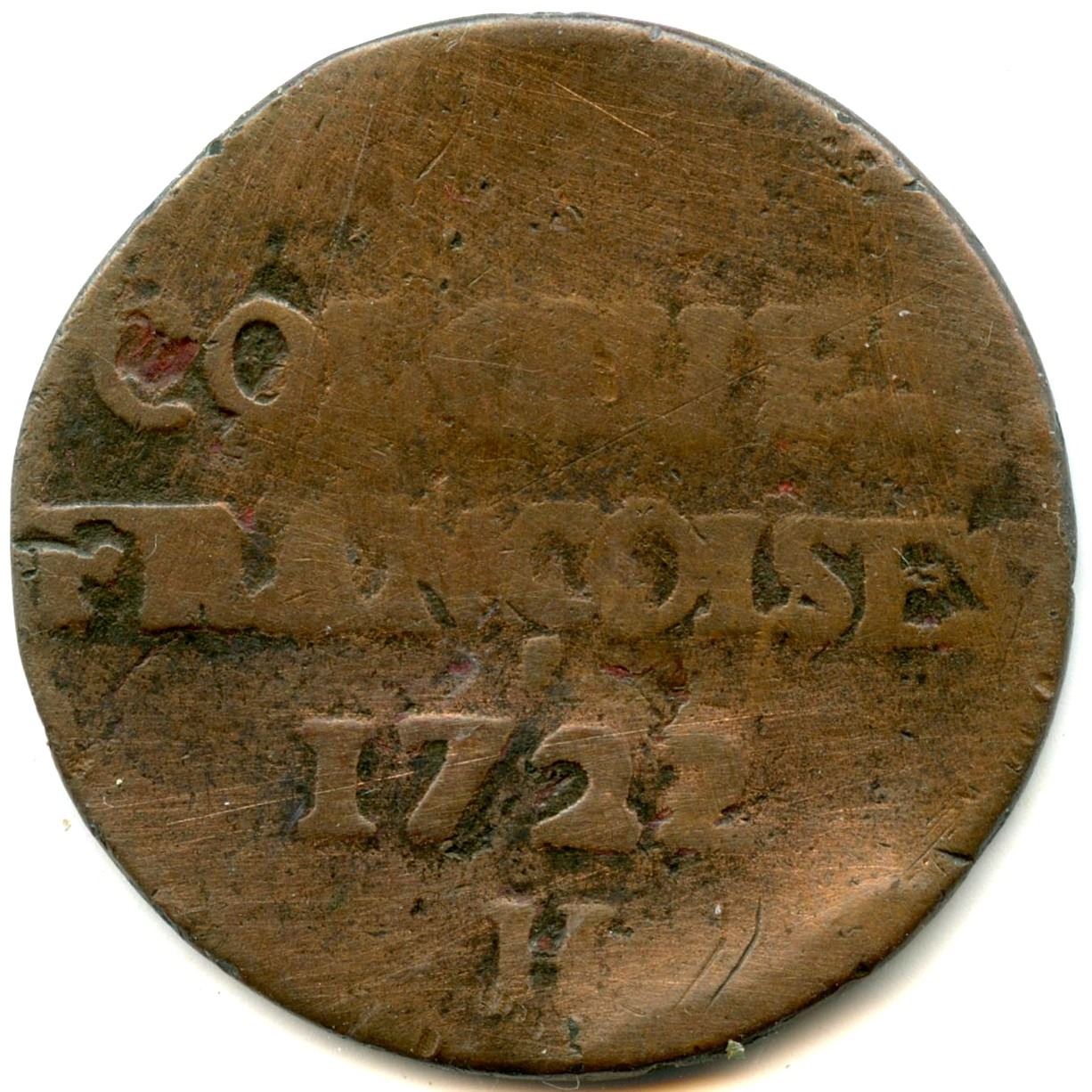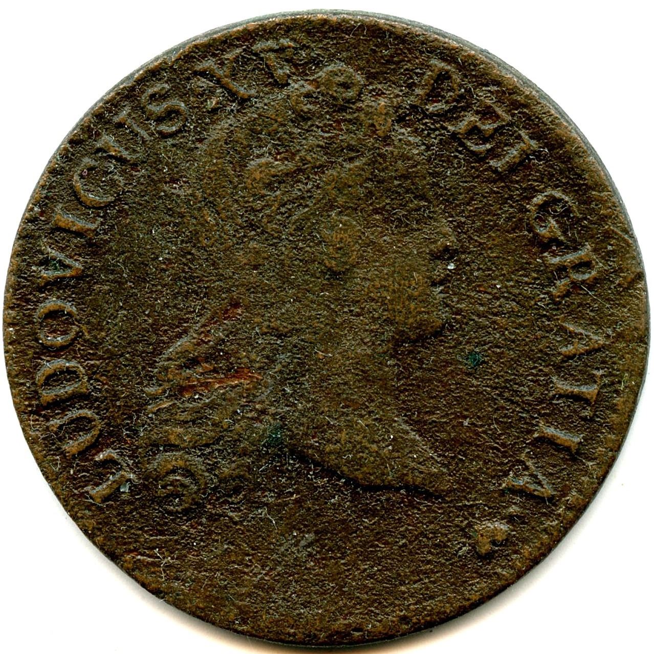 1710, & (Aix-en-Provence),½ Sol, VG Cleaned; 1716 & (Aix-en-Provence), 1/10 Ecu, struck over a Louis XIV 1/10 Ecu, F; 1720 BB (Strasbourg), VG Corrosion; 1720 BB (Strasbourg), ICCS VG Corrosion; BR 506, 1721 H (LaRochelle), VG; Br 506, 1722 H (LaRochelle), AG. 6pcs. Note: this lot is part of The Harry N. James Collection.