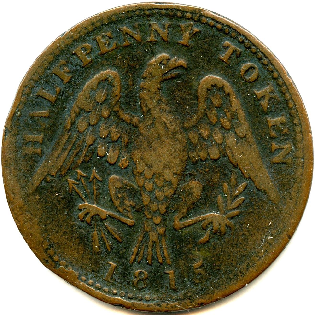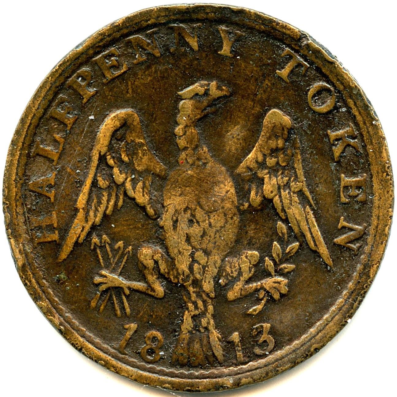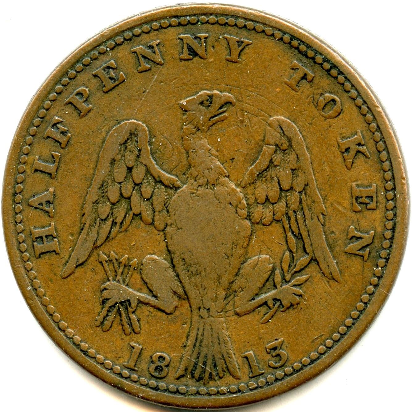 CH-LC-54A, Co. 25, 1813, 8.91g, F; CH-LC-54A, Co. 25, 1813, 7.60g, The undertype (Guppy) Token shows well, F; CH-LC-54B1, Co. 26, 1813, 6.58g, VF; CH-LC-54B1, Co. 27, 5.87g, Brassy 92.10 cu 7.38 zn, F; CH-LC-54C1, Co. 28, 1814, Large Shield, 6.12g, VF; CH-LC-54C2, Co. 29, Small Shield, 6.44g, VF; CH-LC-54D1, Co. 30, 1815, 5.94g, F; CH-LC-54D2, Co. 31, 5.83g, VG; CH-LC-54D2, Co. 31, 6.24g, VF; CH-LC-54D2, Co. 31, 6.24g, UNC. 10pcs. Note: this lot is part of The Harry N. James Collection.