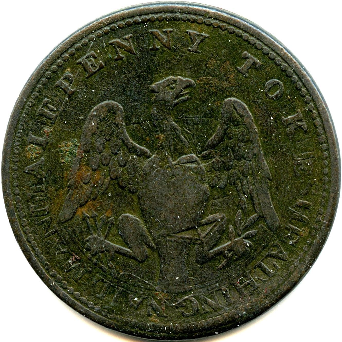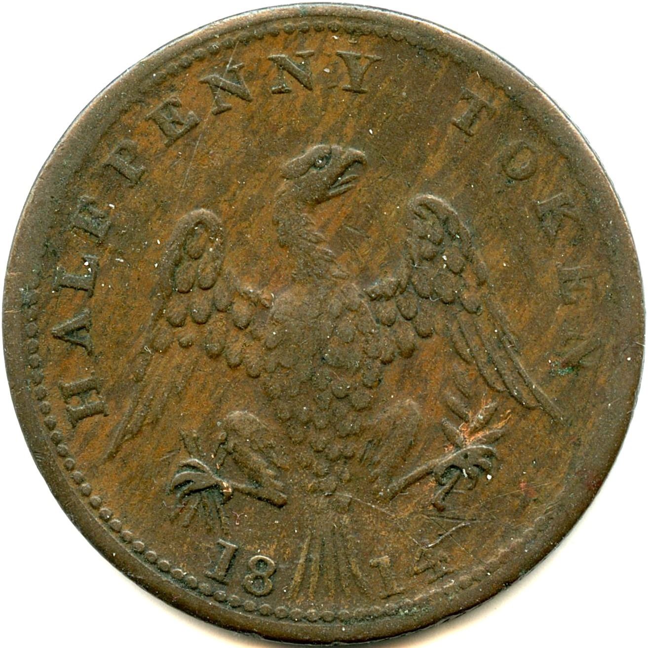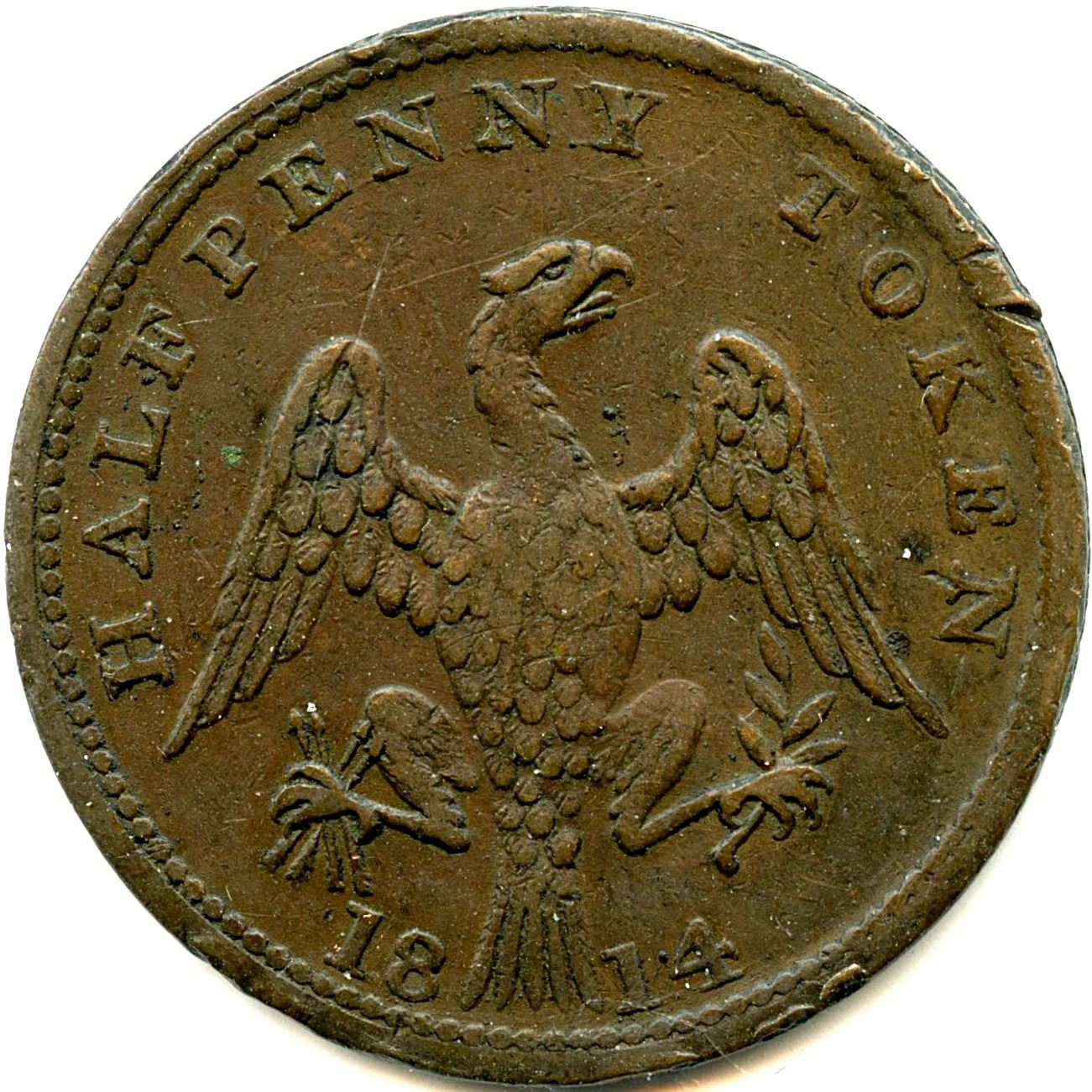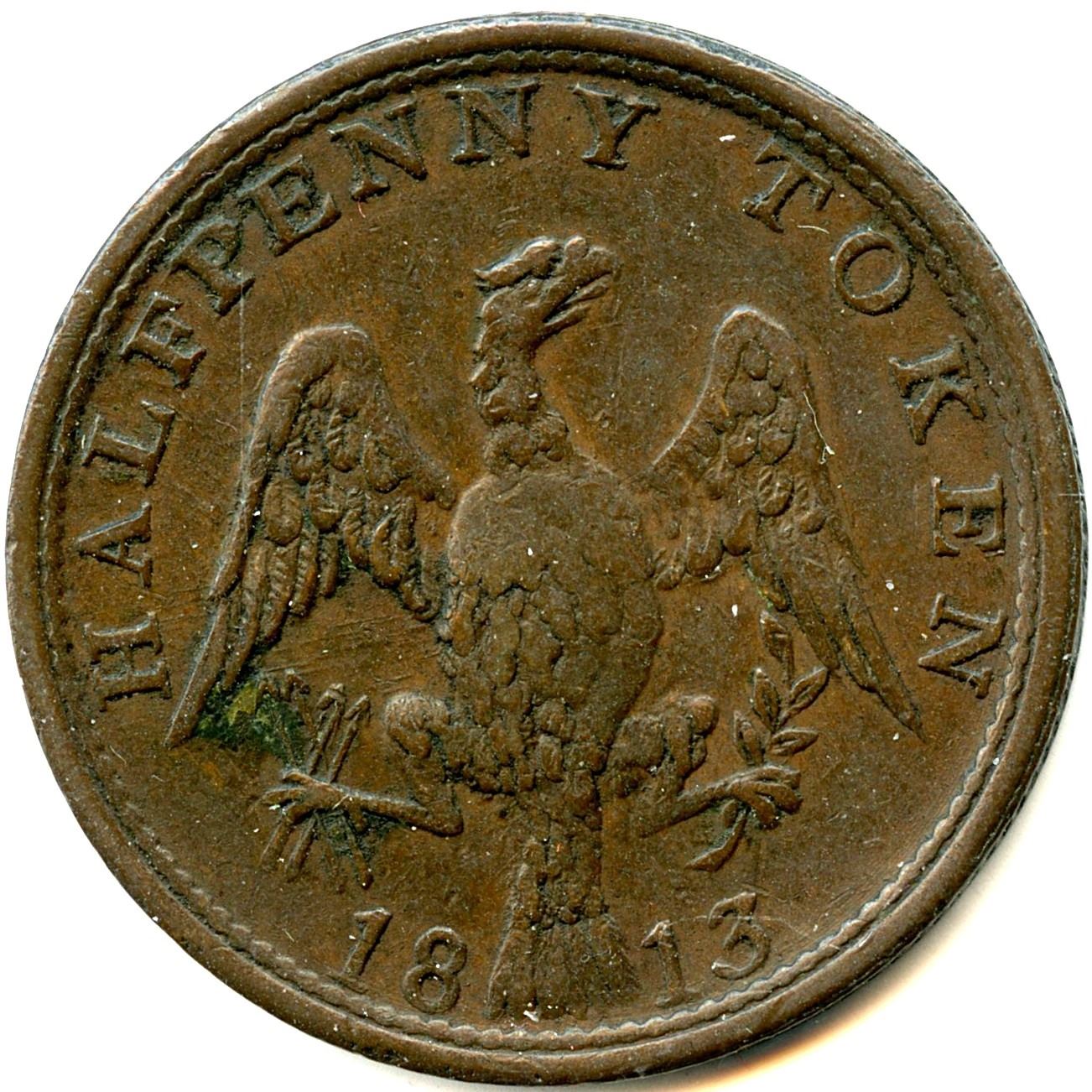 CH-LC-54A, Co. 25, 1813, 8.91g, F; CH-LC-54A, Co. 25, 1813, 7.60g, The undertype (Guppy) Token shows well, F; CH-LC-54B1, Co. 26, 1813, 6.58g, VF; CH-LC-54B1, Co. 27, 5.87g, Brassy 92.10 cu 7.38 zn, F; CH-LC-54C1, Co. 28, 1814, Large Shield, 6.12g, VF; CH-LC-54C2, Co. 29, Small Shield, 6.44g, VF; CH-LC-54D1, Co. 30, 1815, 5.94g, F; CH-LC-54D2, Co. 31, 5.83g, VG; CH-LC-54D2, Co. 31, 6.24g, VF; CH-LC-54D2, Co. 31, 6.24g, UNC. 10pcs. Note: this lot is part of The Harry N. James Collection.