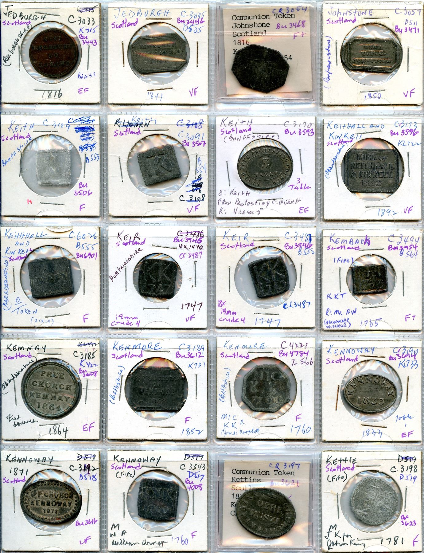 Includes: JEDBURGH, Bu 3443, Cr 3033; Bu 3446, Cr 3035; JOHNSTONE, Bu 3468, Cr 3054; Bu 3471, Cr 3057; KEITH, Bu 3506, Cr 3109, Bu 3507, Cr 3091; Bu 3593, Cr 3170, 3 Table; KEITHALL & KINKELL, Bu 3596, Cr 3173; Bu 6901, Cr 6026; KEIR, Bu 3946, Cr 3487; Bu 3946, Cr 3487; KEMBACH, Bu 3954, Cr 3494; KENMORE, Bu 3612, Cr 3189; Bu 4784, Cr 4221; KENNOWAY, Bu 3614, Cr 3190; Bu 3616, Cr 3192; Bu 4008, Cr 3543; KETTINS, Bu 3621, Cr 3197; KETTLE, Bu 3623, Cr 3198; KILBARCHAN, Bu 3647, Cr 3218; KILCONQUHAR, Bu 3667, Cr 3233; KILDALTON & OA, ISLAY, Bu 3670. Cr 3236; KILCHRENAN & DALAVICH, Bu 3678, Cr 3244; KILLEAN, Bu 3680, Cr 3247; KILLEARNAN, Bu 3691, Cr 3258; Bu 3742, Cr 3307; KILLIN, Bu 4837, Cr 4268; KILMADOCK, Bu 3694, Cr 3261; KILMALCOLM, Bu 3697, Cr 3264; KILMALLIE, Bu 3505, Cr 3089; KILMANY, Bu 3721, Cr 3289. VG to EF. Viewing is highly recommended. 32pcs.