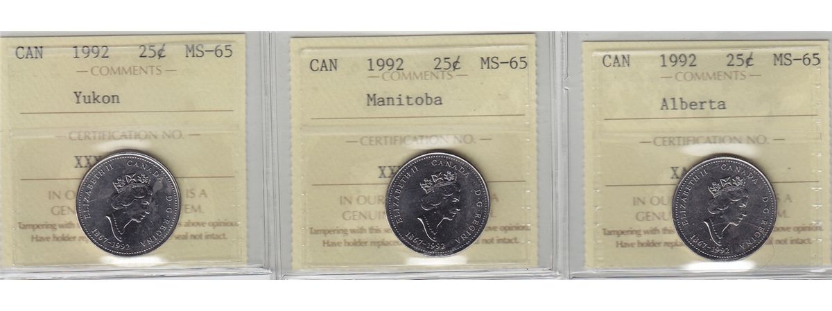 Includes: Alberta, Manitoba and Yukon. All Graded MS-65. 3 PCS.