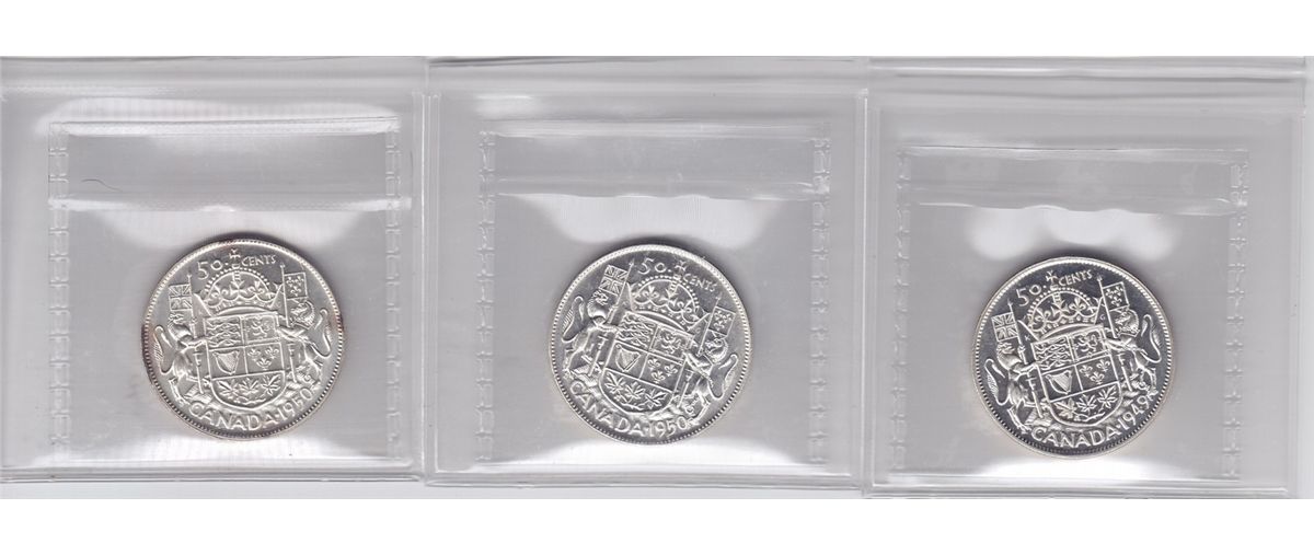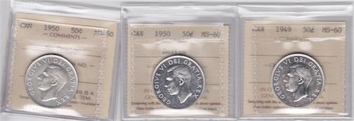 Dates include: 1949, MS-60. 1950, no design, AU-50. 1950, design, MS-60. 3 Pcs.