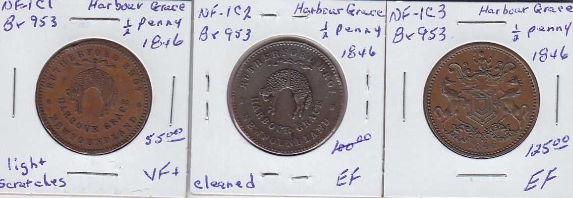 CH NF-1C1, Br 953. VF, Rim Bump. NF-1C2, BR 953. EF, Cleaned. CH NF-1C3, Br 953. EF. 3 Pcs.