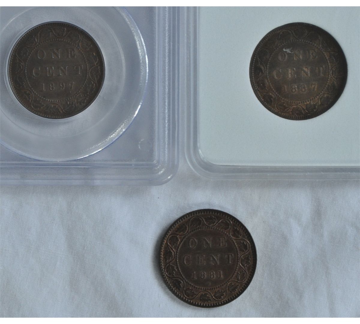 Incudes: 1881 H, EF. 1887 NNC MS-64 Brown. 1897 PCGS MS-63 Brown. 3 Pcs.
