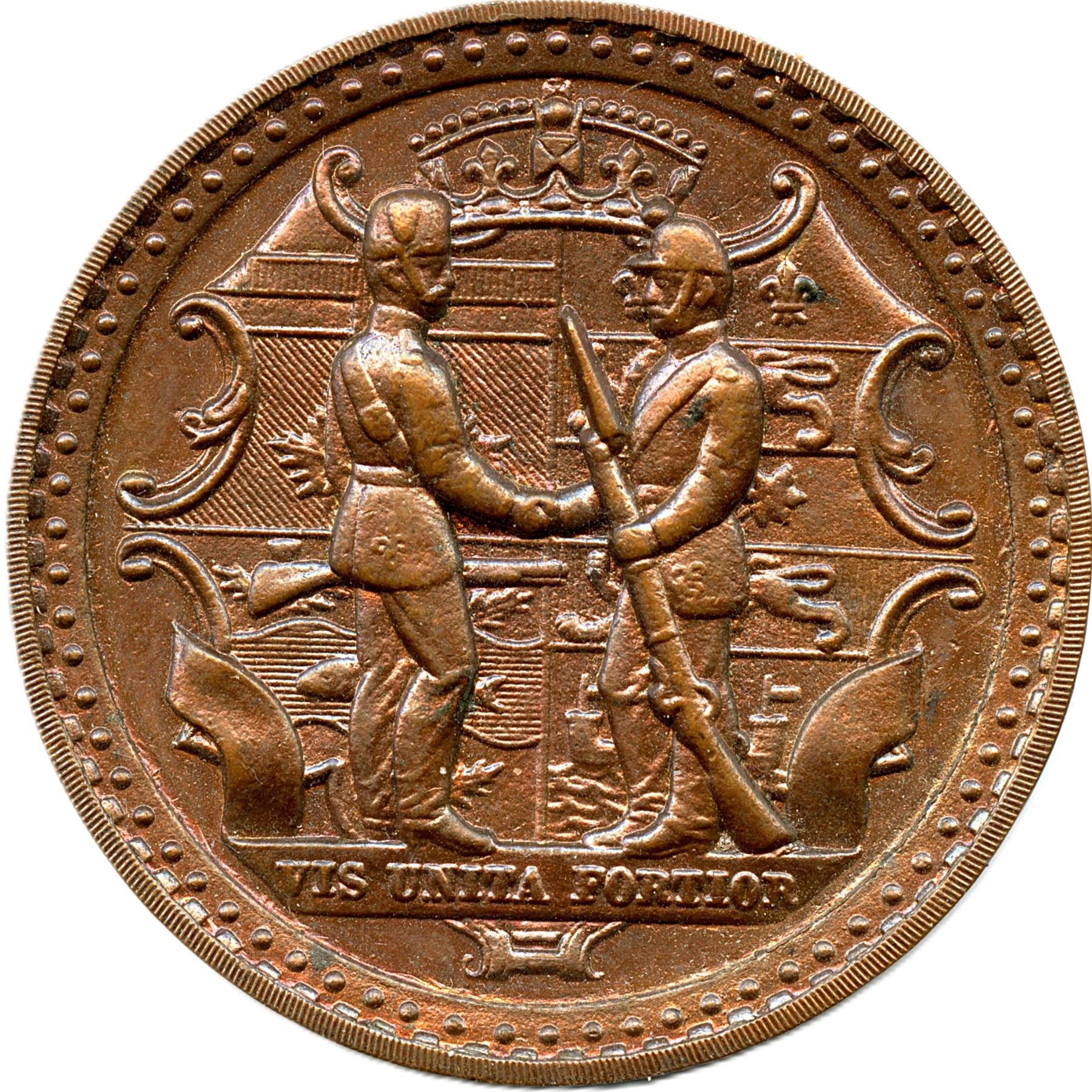 Le. 1600, CH-1705-20-1 Variety 2, Dominion Of Canada Rifle Association, Bronze, 44.5mm, 38.60g, No Maker Mark, Edge engraved "Won by Lieut. J.E. Foreman 2nd P.L.A. AN (Suspension loop impairs some of the engraving) .H. 1922"., EF; Le. 1600, CH-1705-20-1 Variety 2, Dominion Of Canada Rifle Association, Bronze, 44.5mm, 38.75g, No Maker Mark, Edge engraved Capt J.E. Foreman . Regt Matches 1928, EF; Le. 1601, The reverse machined and engraved: "City Of Guelph / Coat of Arms of Guelph / Fides Progressio Fidelitas on a ribbon / W.R.A. 1926", Silver, 39mm, 29.63g, Signed P.W. ELLIS & Co., Edge engraved "Lieut. J.E. Foreman (A And S H) Of C", EF. 3pcs. Note: this lot is part of The Harry N. James Collection.
