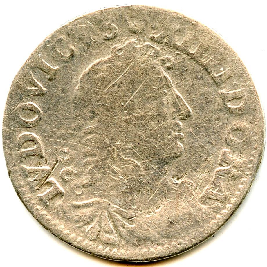 1620, Double Tournois, VG; 1643 A (Corbeil), Double Tournois, F+; 1640 Counterstamped Douzain, F c/s on a very worn host coin; 1640 Counterstamped Douzain, F c/s on a Henry IV Douzain; 1675 A (Paris), 4 Sols, F; 1675 D (Lyons), 4 Sols, VG Scratches; 1675 D (Lyons), 4 Sols, F; 1676 D, (Lyons), 4 Sols, VG Scratches; 1691 A (Paris), 4 Sols, G+ Obv. Scratches; 1691 9 (Rennes), 4 Sols, AG; 1692 D (Lyons), 4 Sols, F, Struck over a 4 Sols (1674-1677); 1726 A (Paris), ½ Ecu, F. 12pcs. Note: this lot is part of The Harry N. James Collection.