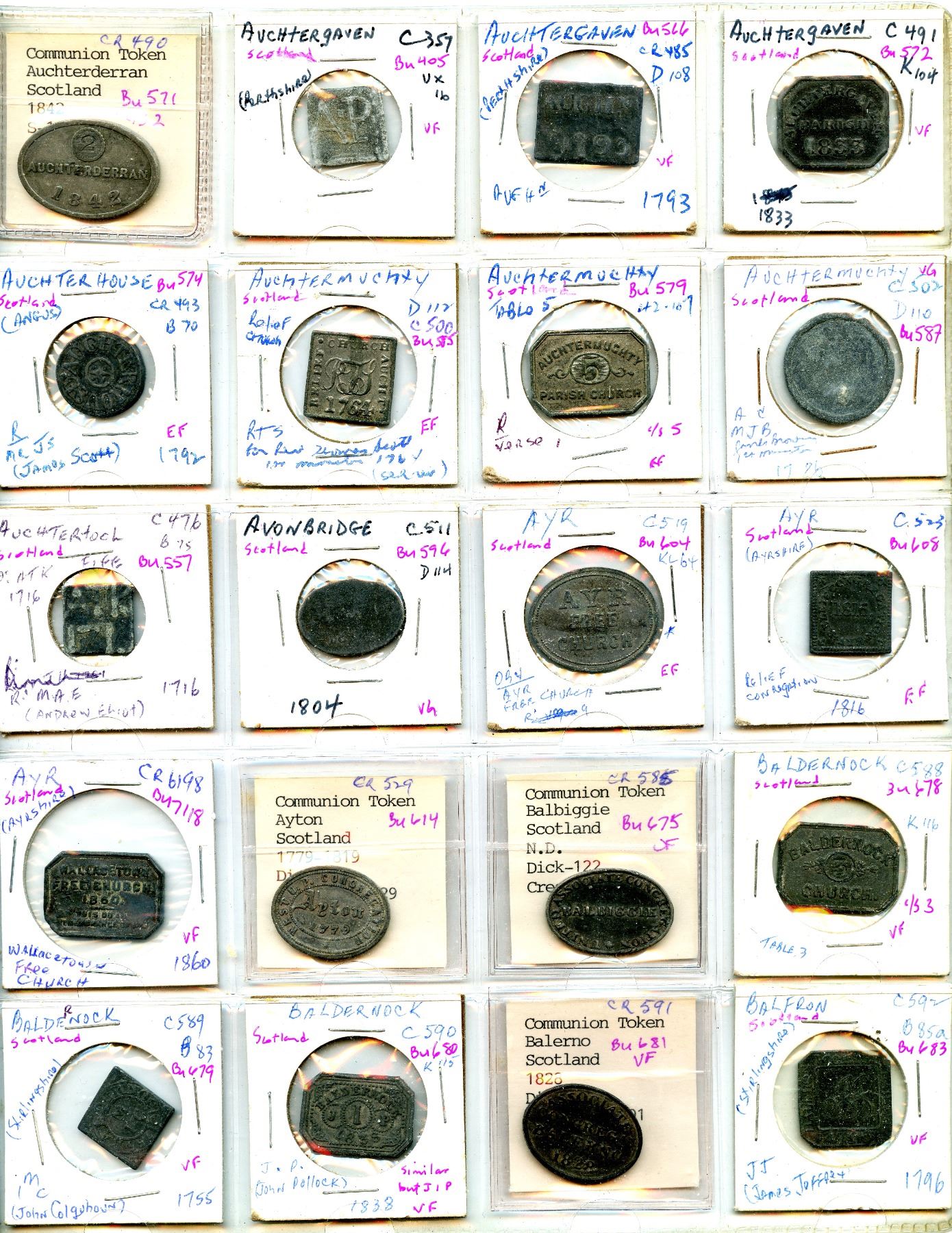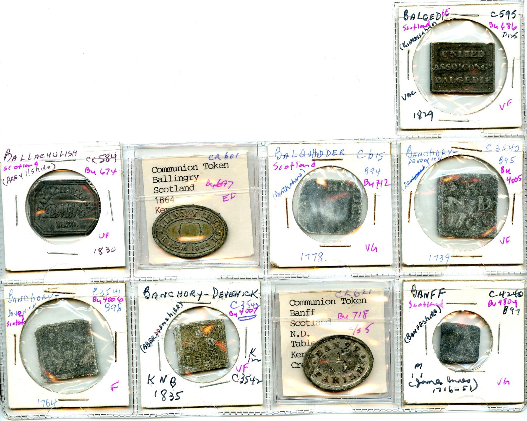 Includes: AUCHTERDERRAN, Bu 571, Cr 490 c/s 2 on obv; AUCHTERGAVEN, Bu 405, Cr 357; Bu 566, Cr 485; Bu 572, Cr 491; AUCHTERHOUSE, Bu 574, Cr 493; AUCHTERMUCHTY, Bu 585, Cr 500; Bu 579 c/s 5 on obv.; Bu 587, Cr 502; AUCHTERTOOL, Bu 557, Cr 476; AVONBRIDGE, Bu 596, Cr 511; AYR, Bu 604, Cr 519; Bu 608, Cr 523; Bu 7118, Cr 6198; AYTON, Bu 614, Cr 529; BALBIGGIE, Bu 675, Cr 585; BALDERNOCK, Bu 678, Cr 588; Bu 679, Cr 589; Bu 680, Cr 590; BALERNO, Bu 681, Cr 591; BALFRON, Bu 683, Cr 592; BALGEDIE, Bu 686, Cr 595; BALLACHULISH, Bu 674, Cr 584; BALLINGRY, Bu 697. Cr 601; BALQUHIDDER, Bu 712, Cr 615; BANCHORY-DEVENICK, Bu 4005, Cr 3540; Bu 4006, Cr 3541; Bu 4007, Cr 3542; BANFF, Bu 718, Cr 621; Bu 4804, Cr 4240. VG to EF. Viewing is highly recommended. 29pcs.
