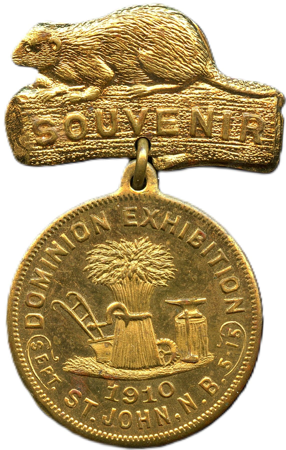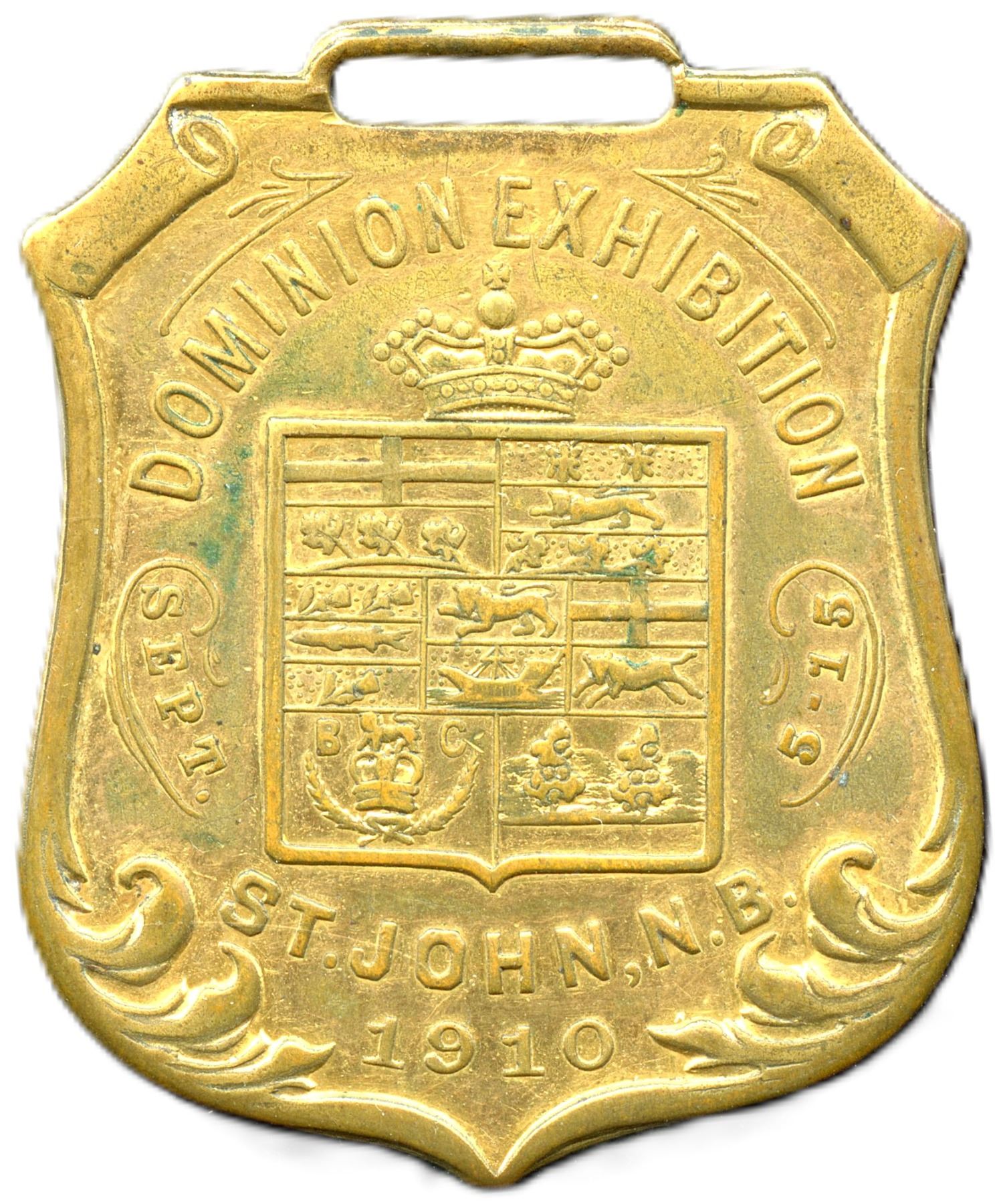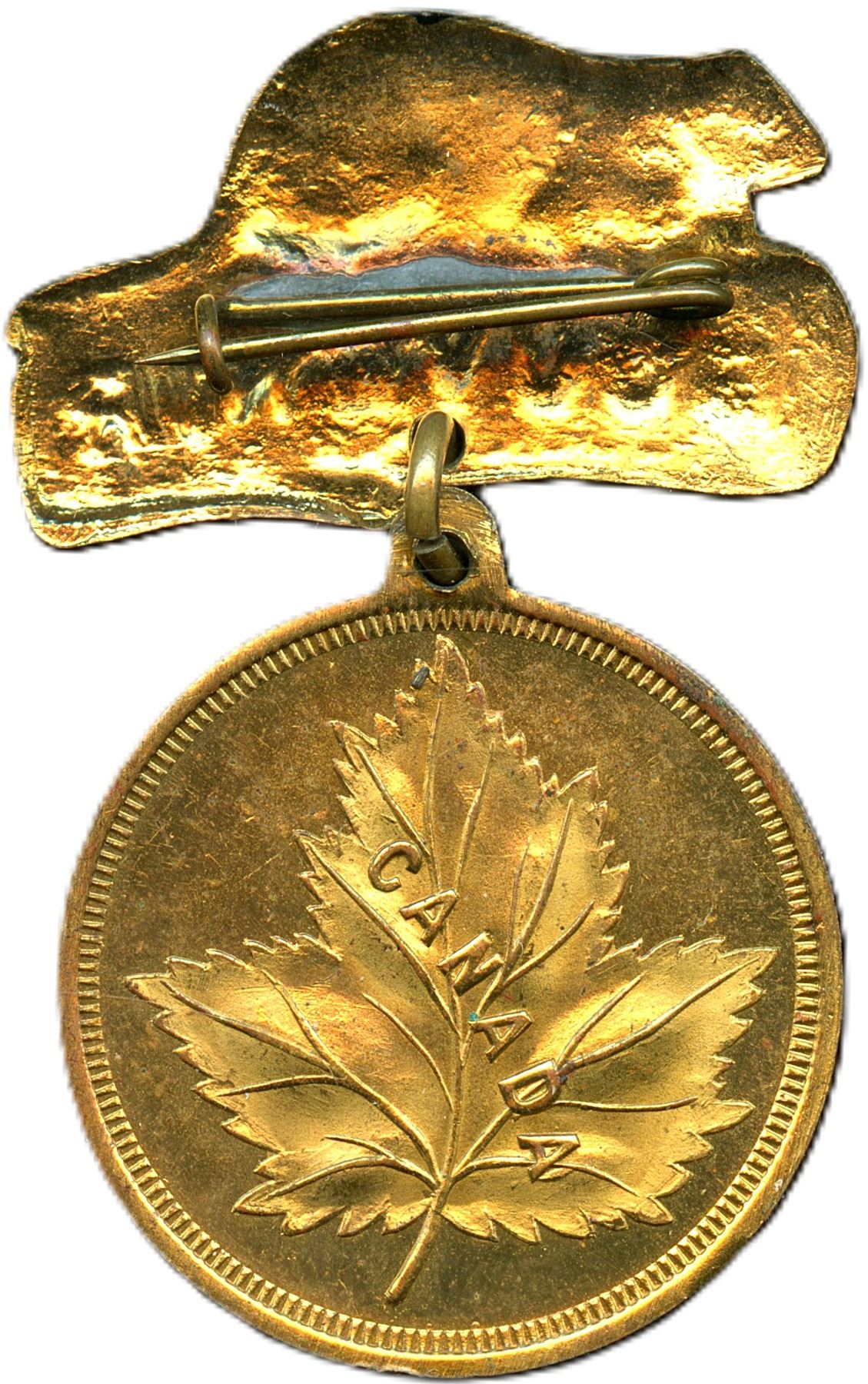 CH-EODS-54, Gilt Brass, Rev: Canada, Hanger Beaver facing left 31 x 18mm, 28 x 32mm, 10.2g, AU; CH-EDOS-48, Fob, Gilt Brass, Shield Shape, 34 x 41.5mm, 12.5g, VF. 2pcs. From the Geoffrey Bell Collection.