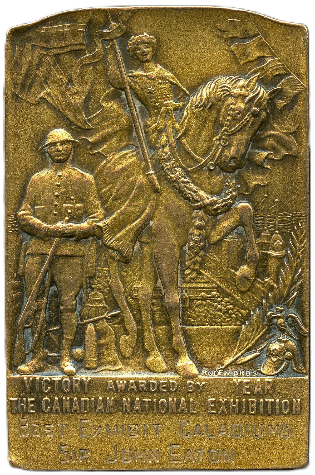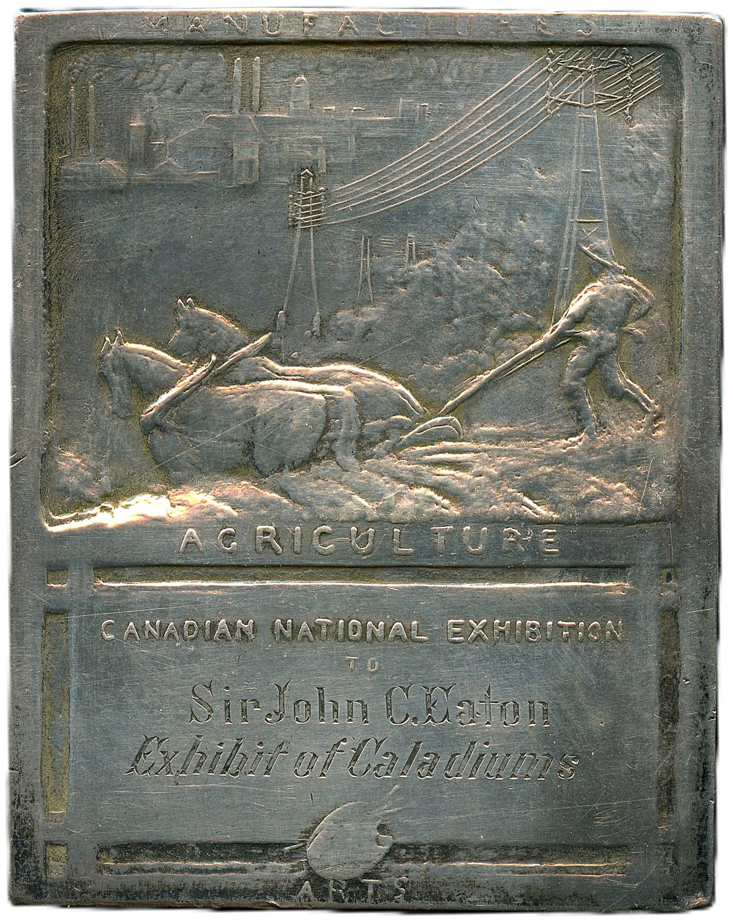 Lot of Two CNE Medals Awarded to Sir John Eaton. CH-EONA-105, Silver, 43.7 x 55.5mm, 75.3g. Exhibit of Caladiums, EF; CH-EONA-109, Bronze, 37.9 x 57.5mm, 67.9g,Best Exhibit Caladiums, EF. Sir John Craig Eaton (April 28, 1876 - March 30, 1922). Sir John was the youngest son of department store magnate Timothy Eaton and Margaret Wilson Beattie. He married Flora McCrea in 1901, and they had six children. Upon the death of his father in 1907, he inherited five million dollars and the T. Eaton Company. He became its president at this time, and the company flourished under his control. He greatly influenced the company and expanded the stores nationally. Ex. Waddington Sale 11/09/2017-b Lot 266. 2pcs.