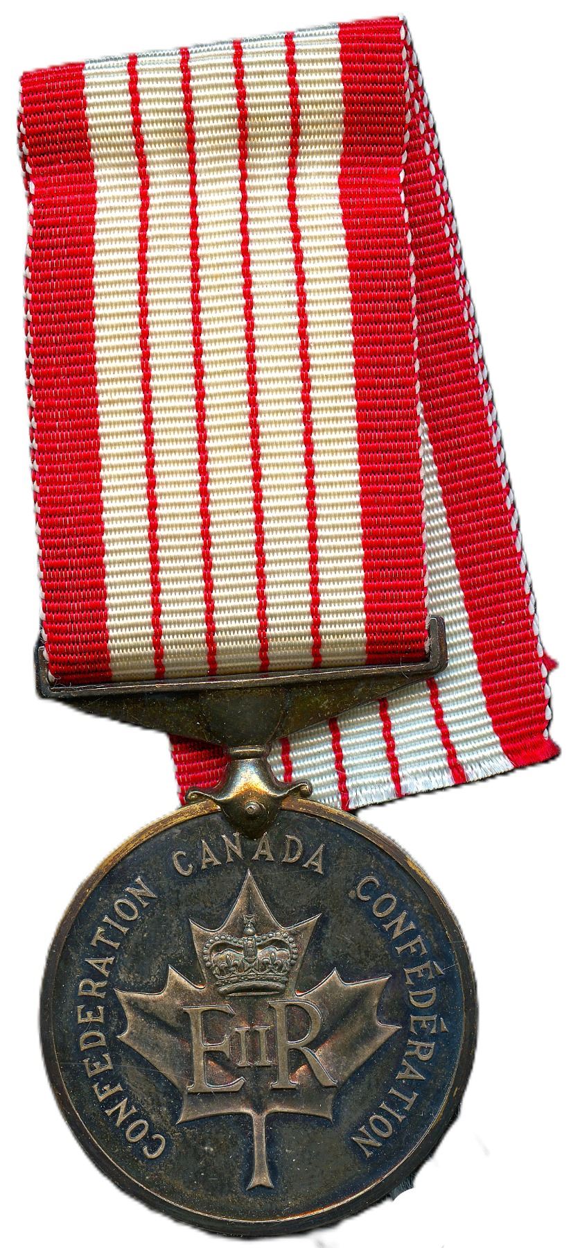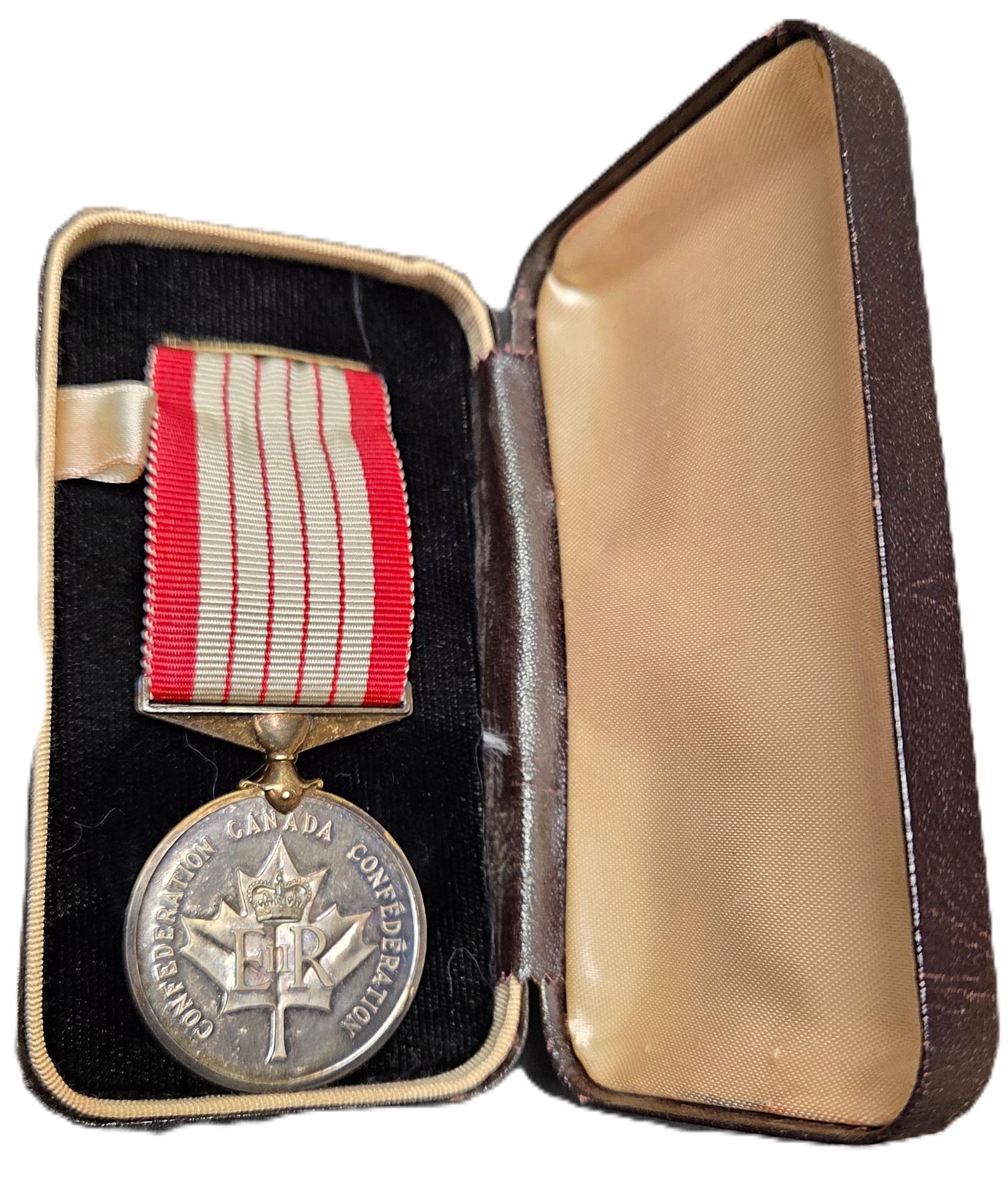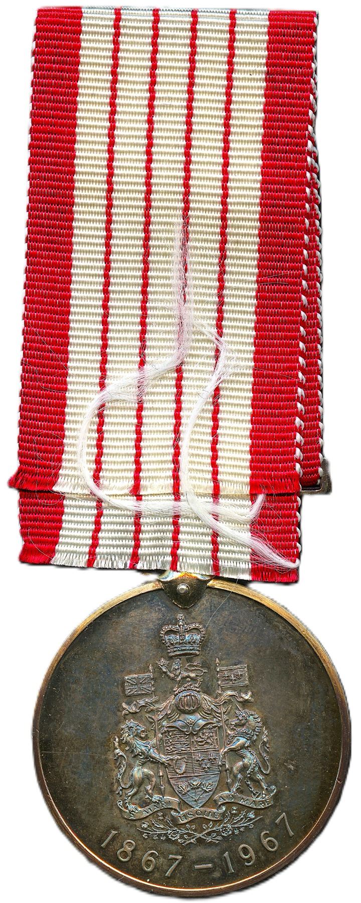 Lot of Two Confederation Medals. 1967 Confederation silver medal with red and white ribbon. 36.3 x 49.6mm, 36.5g (1.0855ASW). In case of issue. UNC: 1992 Confederation Nickel plated Copper with red, white and blue ribbon. 34.8 x 96mm, 37.5mm. UNC. 2pc.