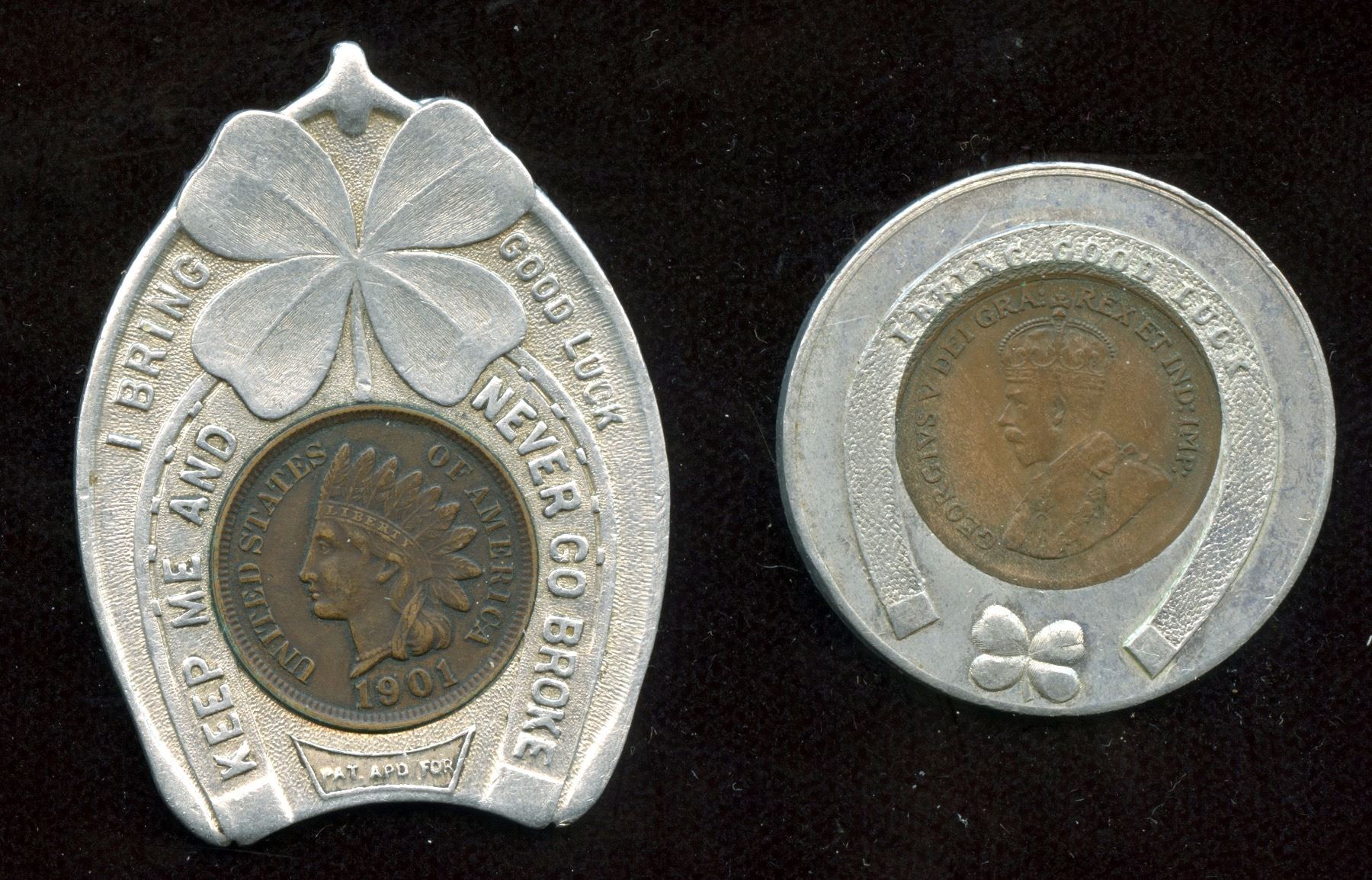 1901 Encased USA penny, W.I. Lumber Co., Minneapolis, Minn. F/VF; 1929 Encased Canada Cent, Souvenir of Canada. VF. 2 pcs.