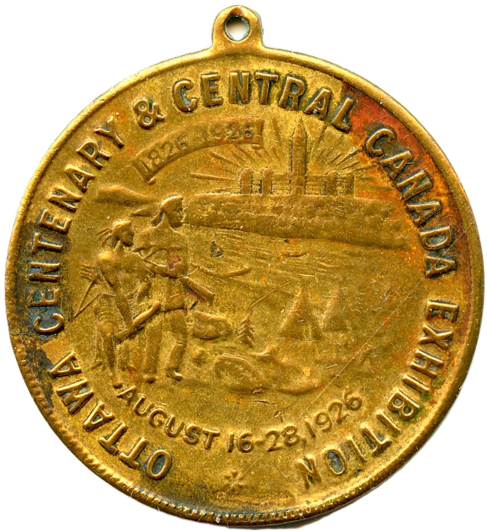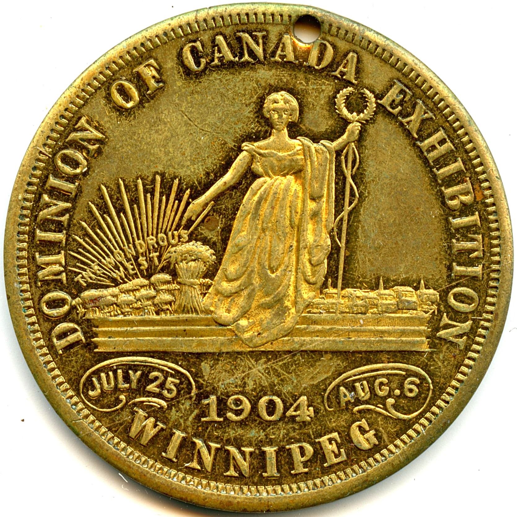 CH-EDOS-18, Dominion of Canada Exhibition 1904 Winnipeg, Missing Suspenion Bar, EF; CH-EONS-66, Ottawa Centenary & Central Canada Exhibition, 1926 Ottawa, VF. 2pcs. Note: this lot is part of The Harry N. James Collection.