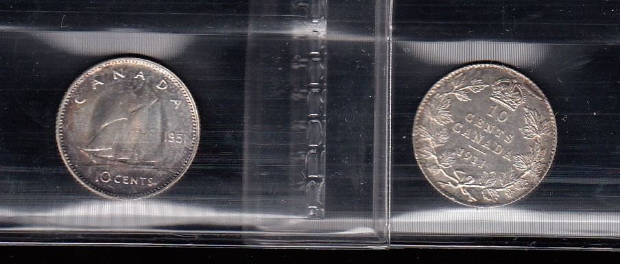 Lot of Two ICCS Graded Ten Cents - Includes: 1911 EF-40. 1951 MS-64. 2 Pcs.