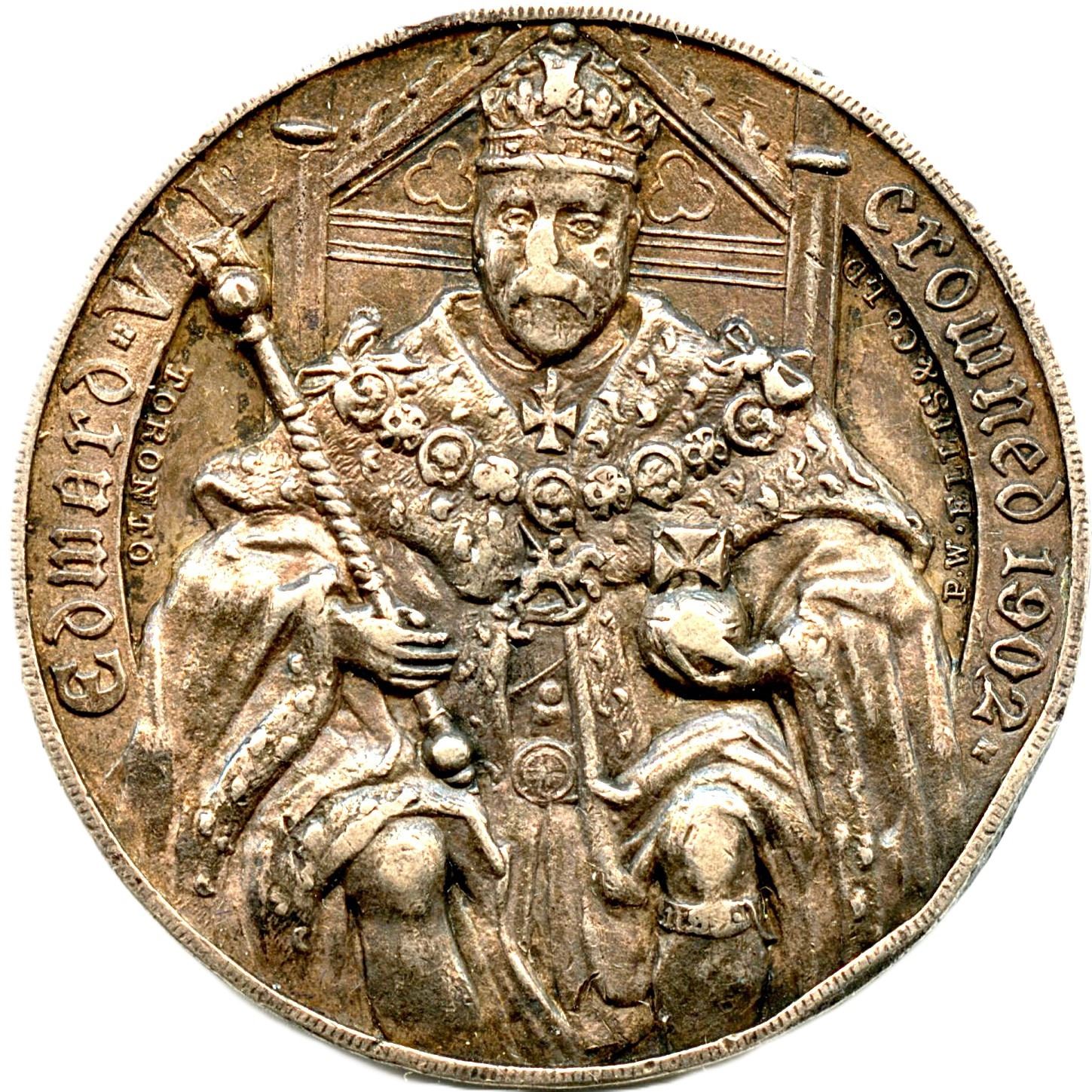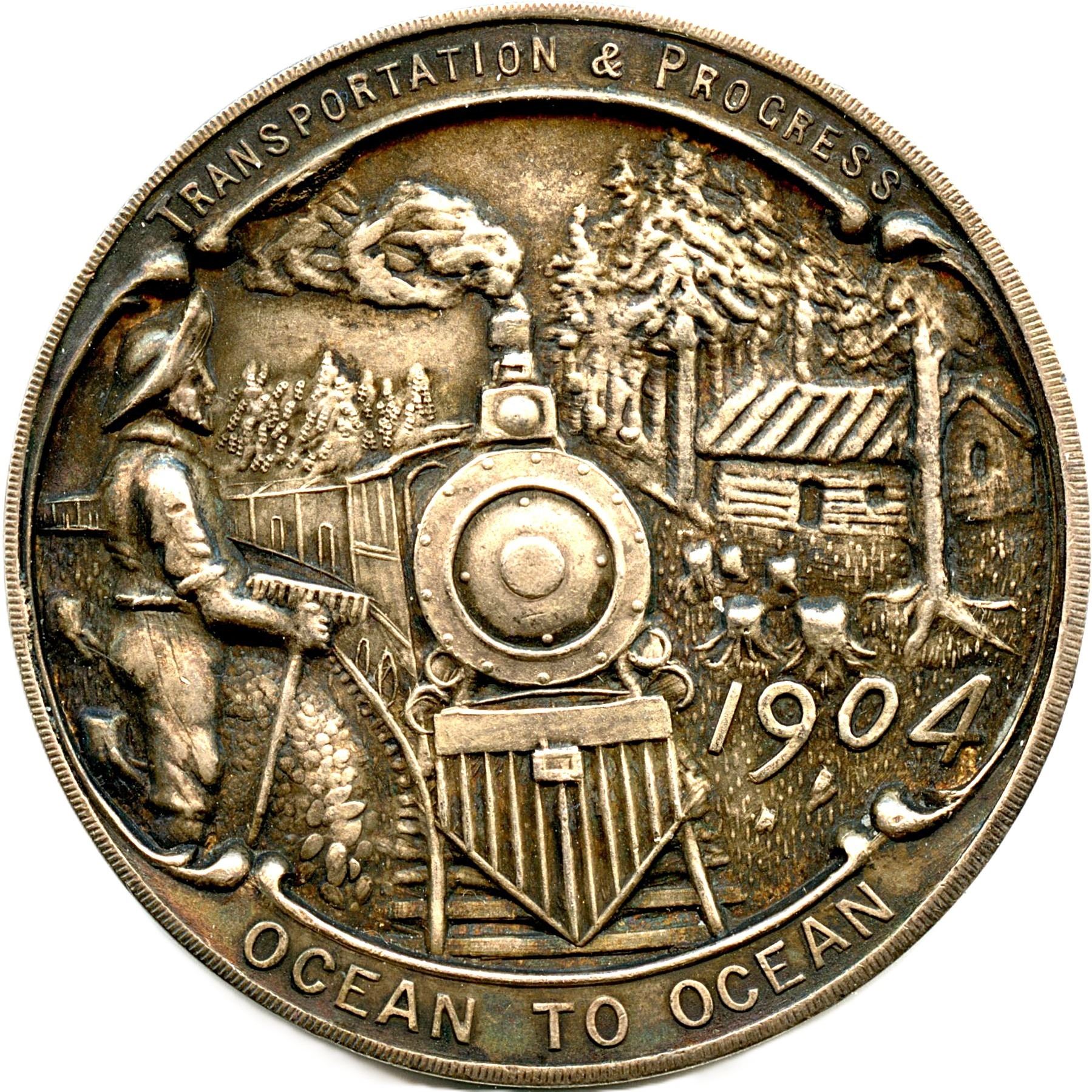 CH-EONA-88 Var. 2 (small size), 30.7mm, 18.65g, Plain Edge, Silver, 1902 Edward VII on Throne, Edge bumps, VF; CH-EONA-90, 38mm, 22.79g, Plain Edge, 1904 Train, EF. 2pcs. Note: this lot is part of The Harry N. James Collection.