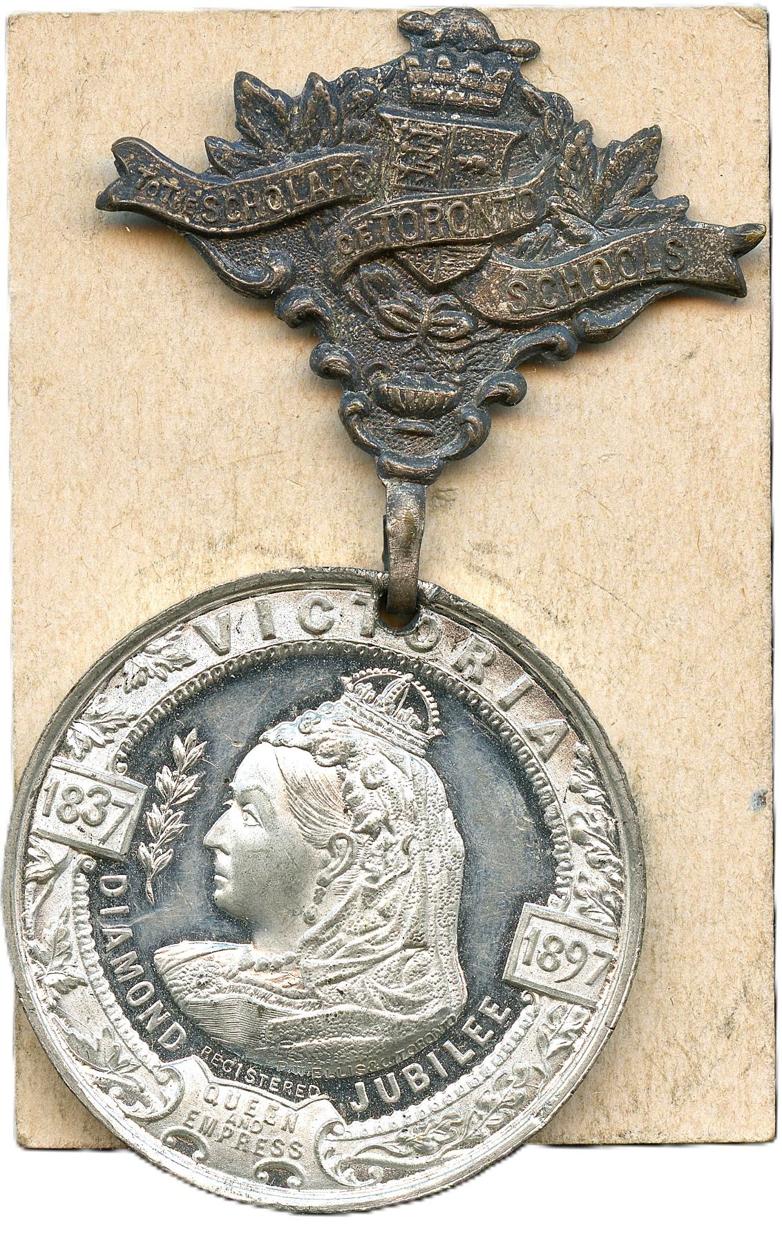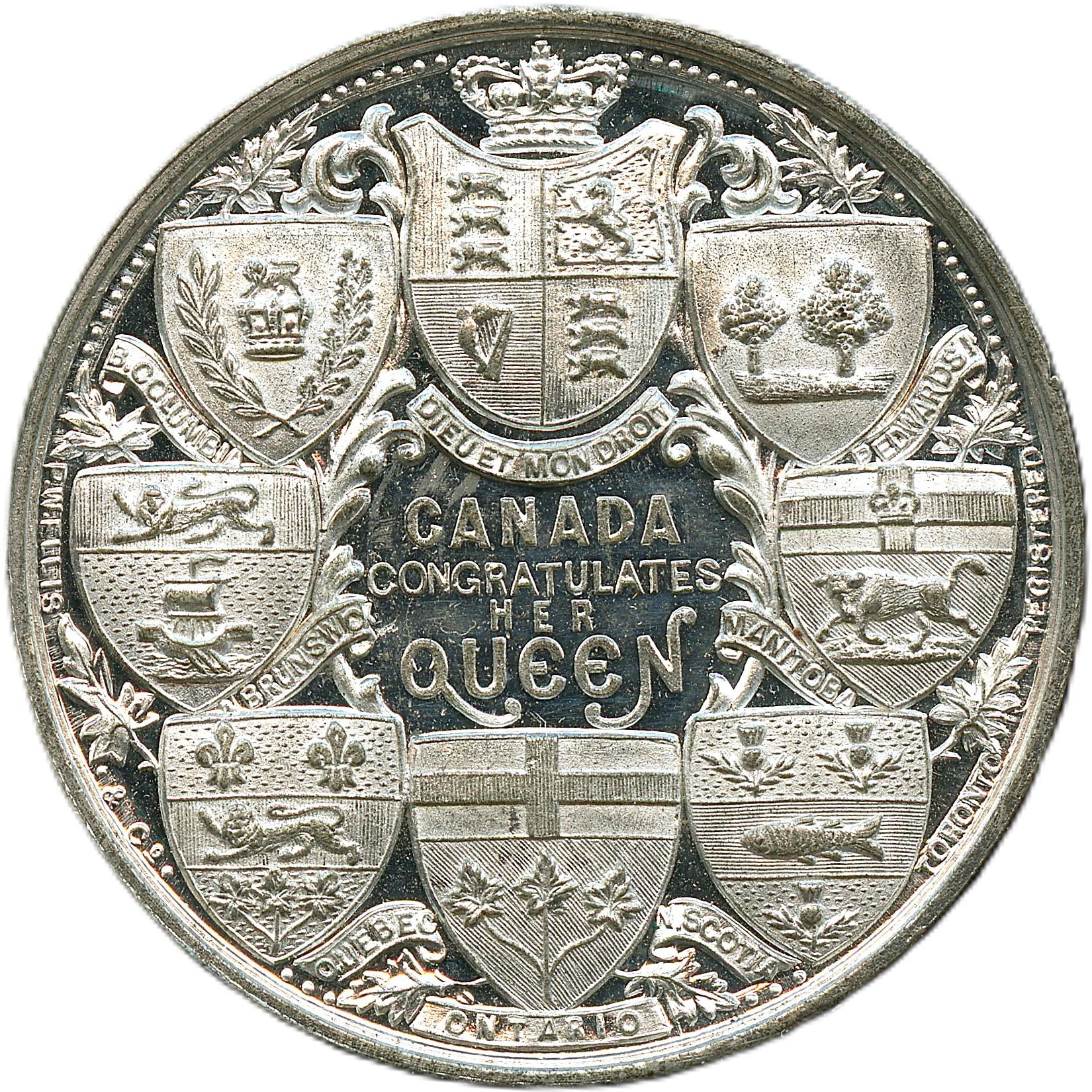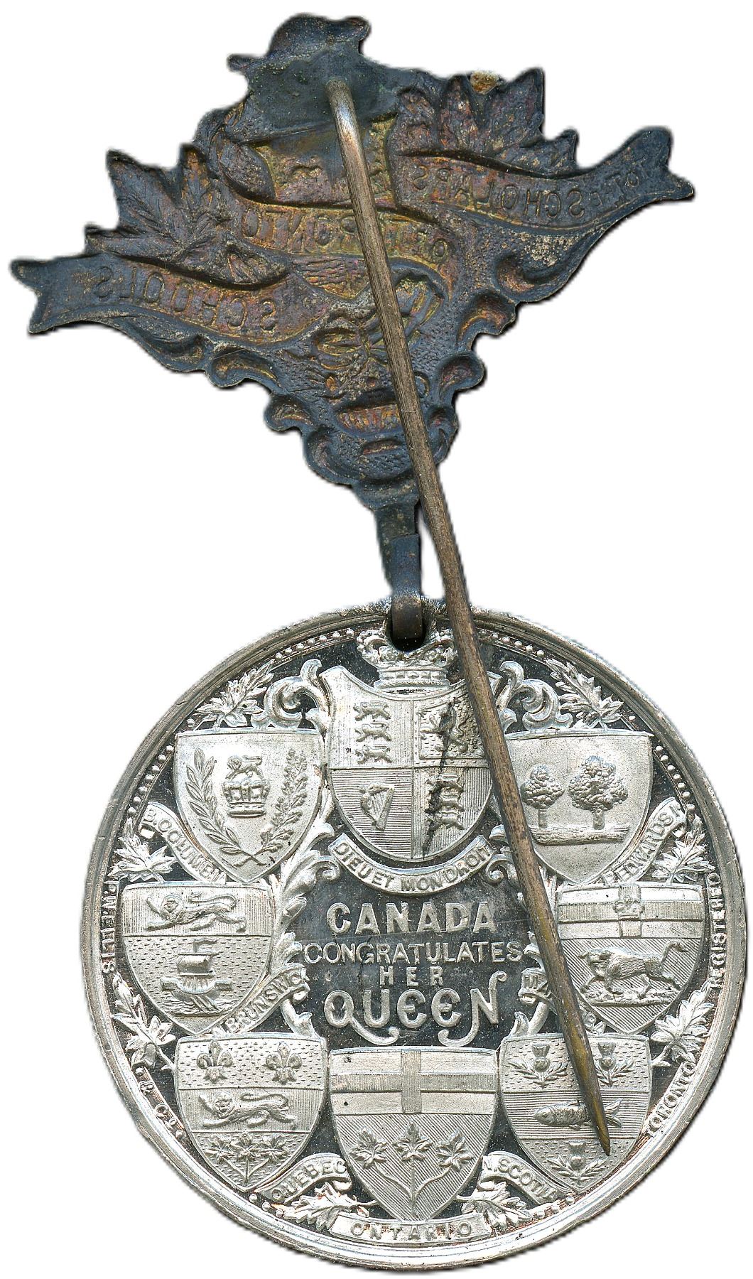 Lot of Two Lr. 1875n Queen Victoria Diamond Jubilee White Metal Medals. 24.8mm, 14.9g. In original round cardstock box. Box is in good condition, UNC; 54.5mm, 14.8g. With Original Suspension. In original rectangle box, box is missing two flaps. UNC. 2pcs.