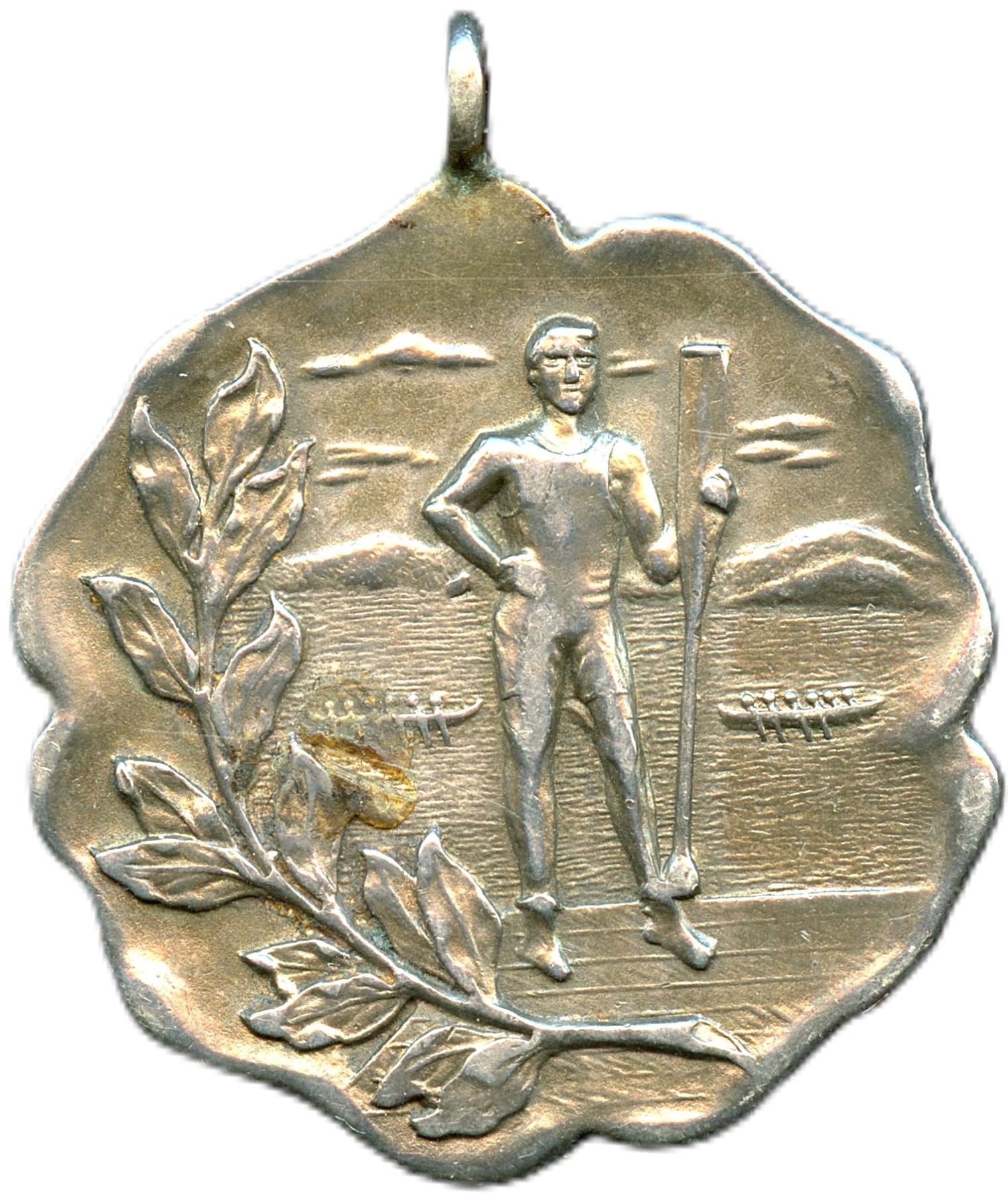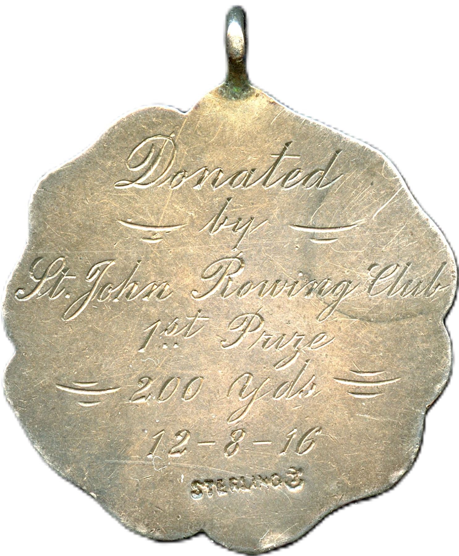 1902, King Edward, Royal Hotel, White Metal, 32mm, 9.6g, Holed for suspension, AU; Sterling Silver Medal Donated by St. John Rowing Club 1st Prize 200 Yds 12-8-16, 31.5mm, 9.0g, EF. 2pcs. From the Geoffrey Bell Collection.