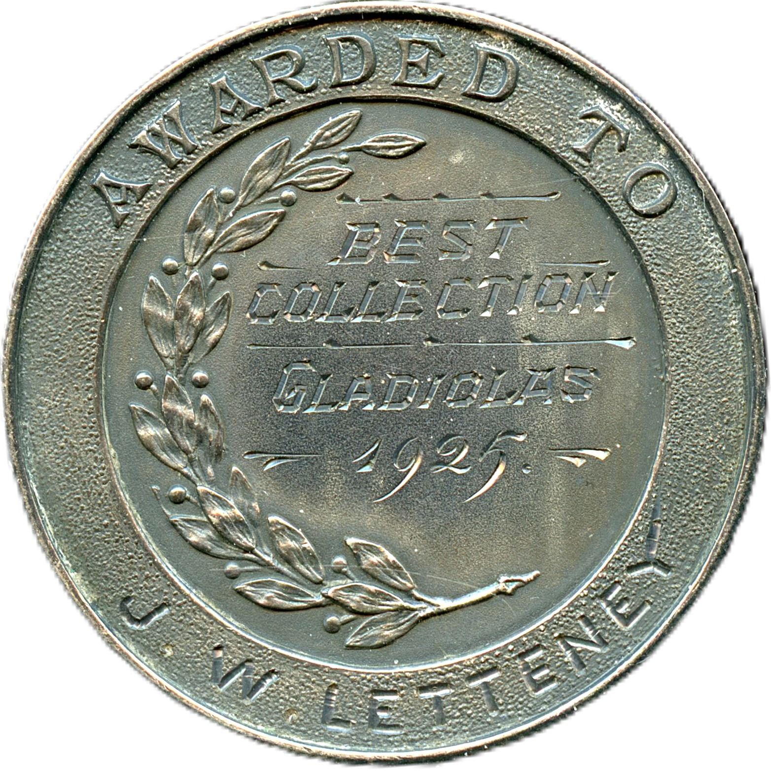 CH-ENBS-15, Awarded to "Best Collection Gladiolas 1925 J.W. Letteney", Silver, Coinage Alignment, 32.7mm, 19.2g, UNC; CH-ENBS-15, Awarded to "Manuel Training 1934 Gerald Hatty", Silver, Medal Alignment, Loop and Ring Attached. 32.6mm, 18.3g, UNC. 2pcs. From the Geoffrey Bell Collection. From the Geoffrey Bell Collection.