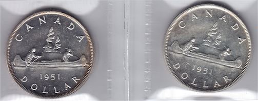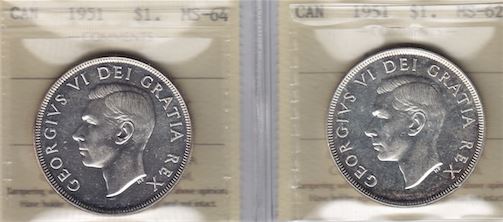 Lot of Two Varieties of 1951 Silver Dollars Both ICCS Graded MS-64. MS-62 Arnprior. 2 Pcs.