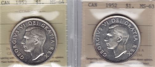 Lot of Two Varieties of 1952 Silver Dollars Both ICCS Graded NWL MS-63. Waterlines MS-64. 2 Pcs.