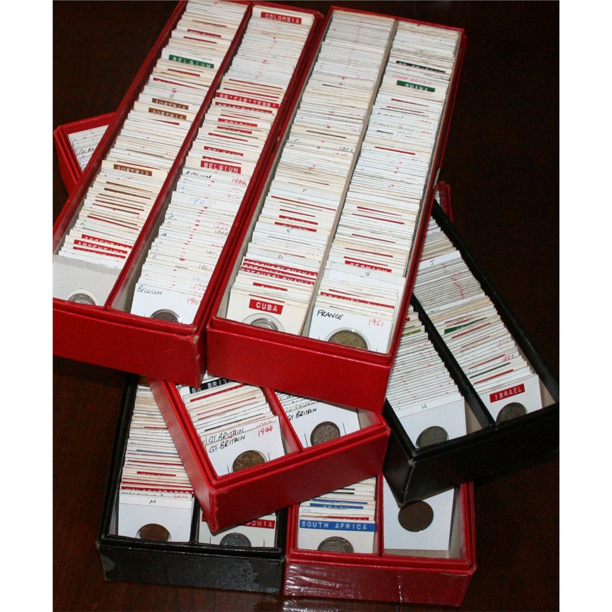 Dealers stock of less expensive World coins in 6 double row boxes. All in 2X2's and priced. Austria to Zanzibar, over 110 different countries. Over 1500 coins including more than 23 ounces of silver ASW. Priced at over $7300. Worthy of a look. Sold as is, no returns.