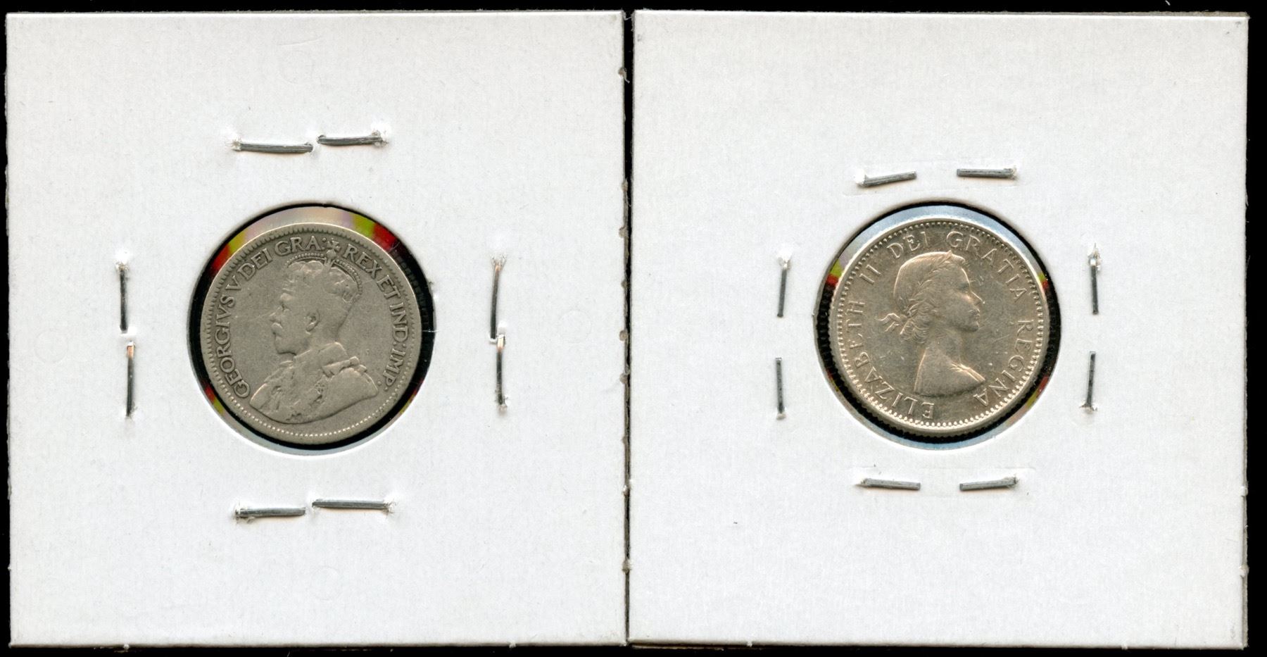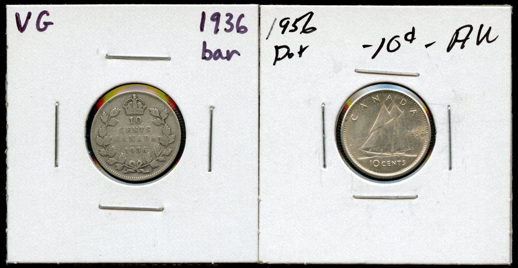 Lot of two popular silver 10c varieties: 1936 bar (VG) and 1956 dot (AU+)