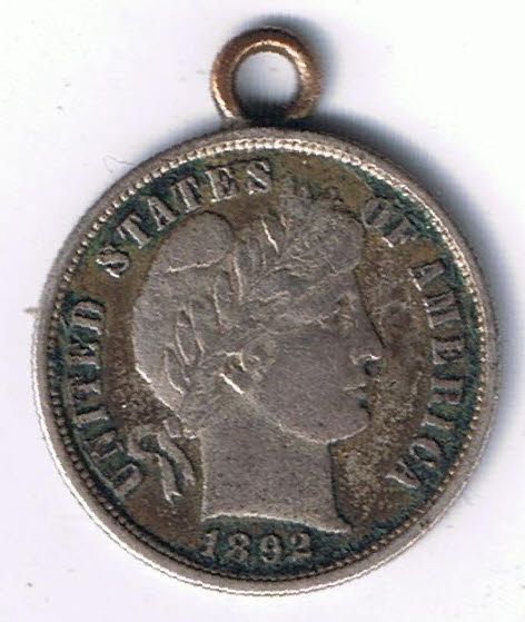 Love Token. 1892 Barber Dime. Engraved: with Lady Liberty and Worlds Fair 1893 Chicago.