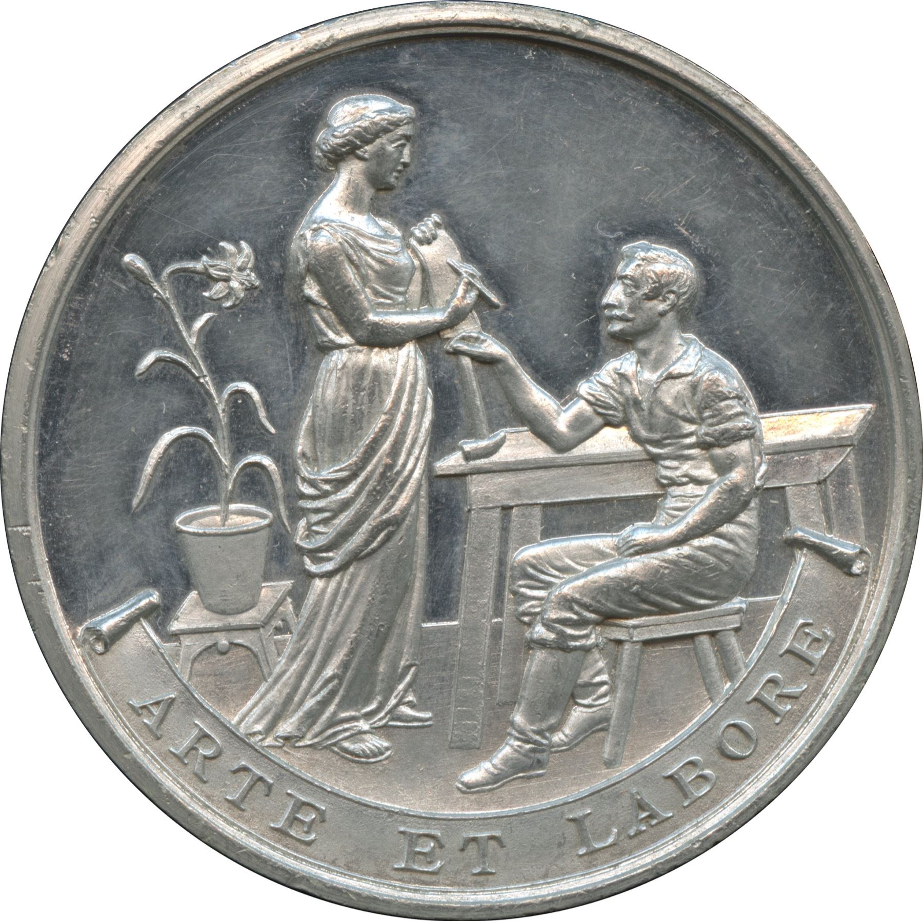 Charlton-1455-5. 45.1mm. 39.8g. Plain edge. Signed P.W. ELLIS & CO. TORONTO. Per the Charlton reference on association and society medals (2008): “On April 14, 1858, 62 manufacturers, merchants and journalists met in the St. Lawrence Hall in Toronto for the purpose of recommending such a readjustment of the tariff as would place the manufacturers of Canada on a footing of greater equality with these of the United States, according to the Toronto Globe. The gathering marked the beginning of what was to be known as the Canadian Manufacturers’ Association.” This white metal example boasts eye-catching proof surfaces. Both sides are totally brilliant with clean fields and pinpoint definition.