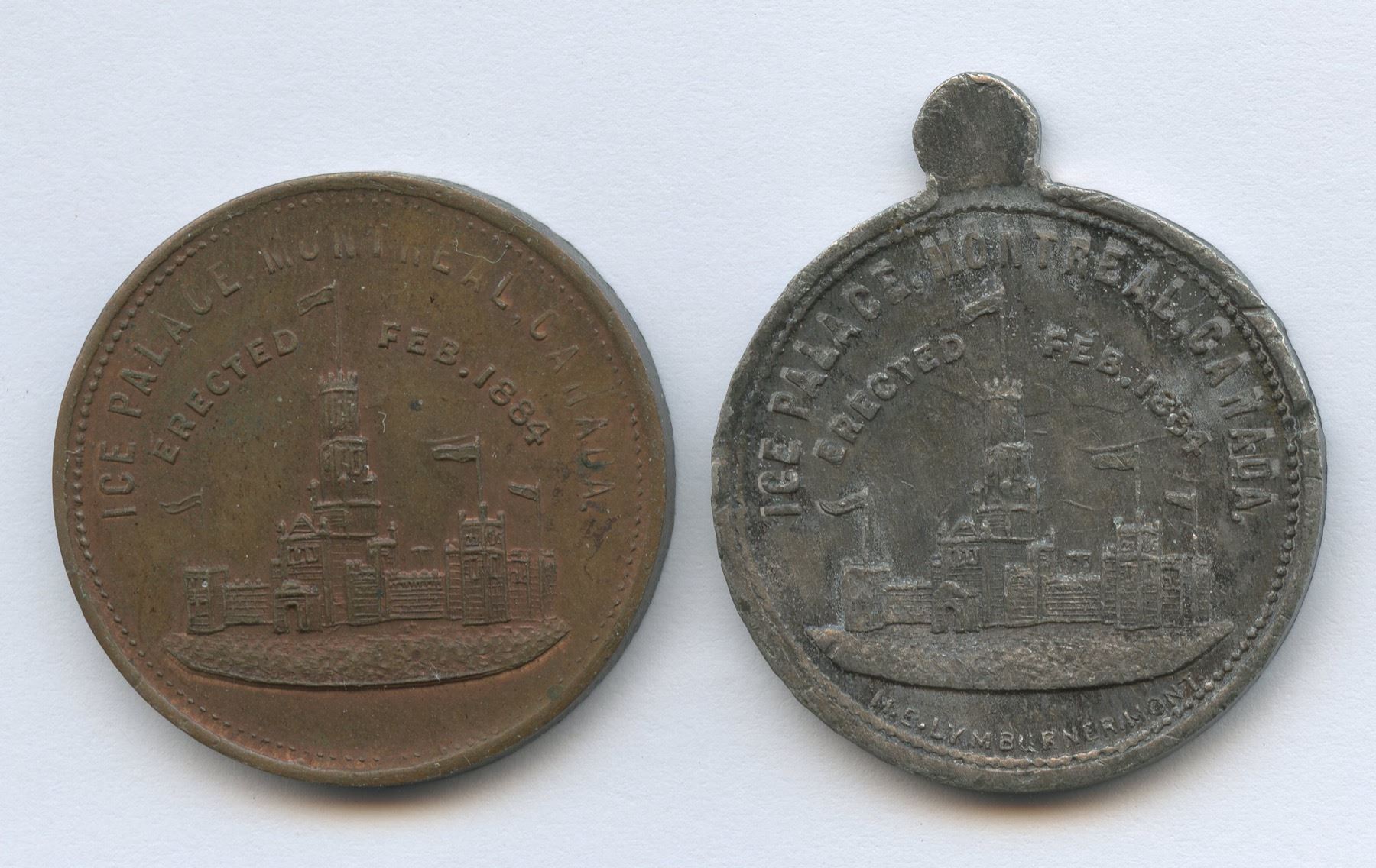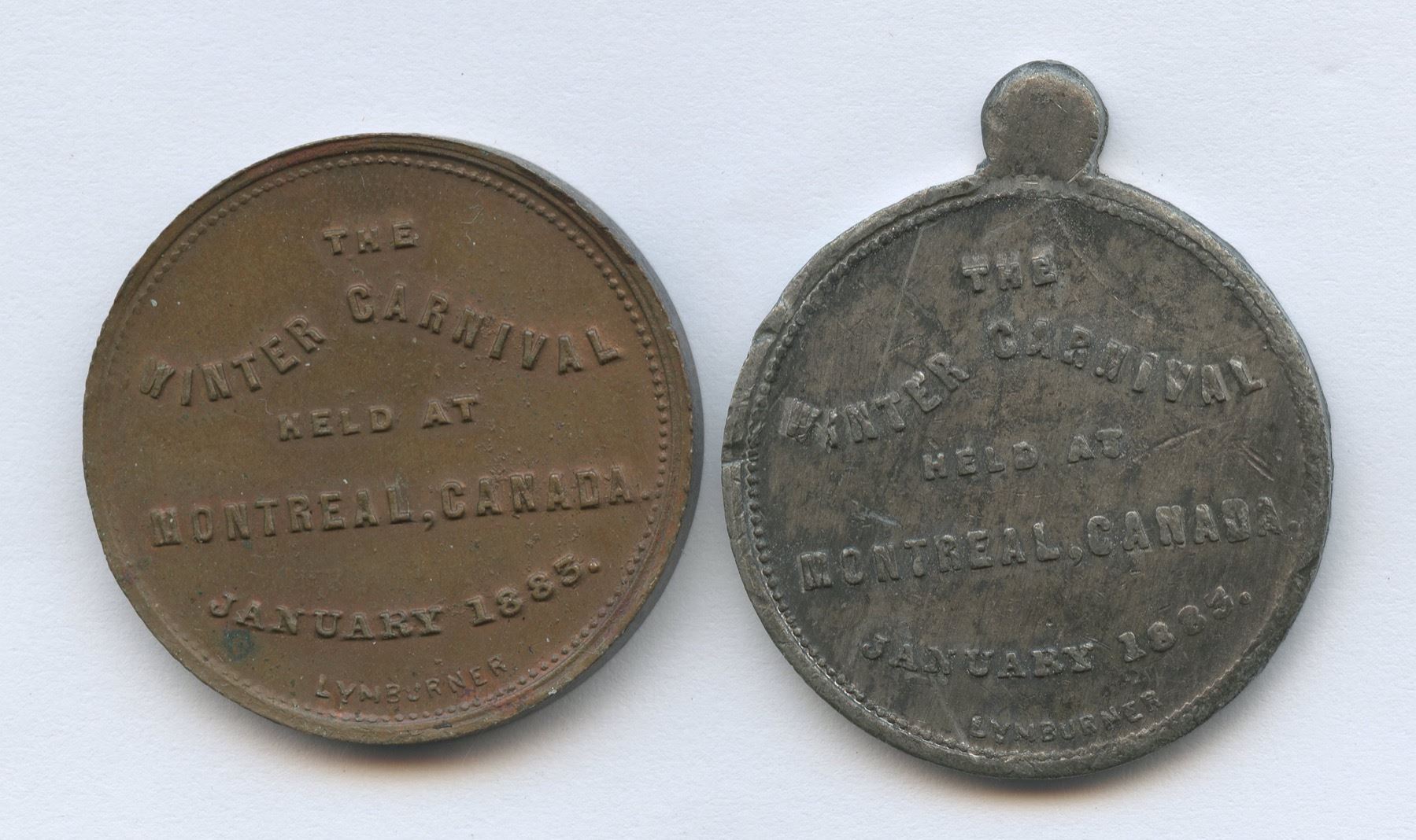 Lot of two medals. Obverse of Lr. 1150, reverse of Lr. 1145. 1.) White metal. EQCC-42. 27.4mm. 6.1g. Plain edge with unpierced integrated loop. Signed LYMBURNER on both sides. 2.) Copper. Charlton-EQCC-42. 27mm. 10.0g. Plain edge. Signed LYMBURNER on reverse only (Variety 1). Glowing copper-orange lustre.