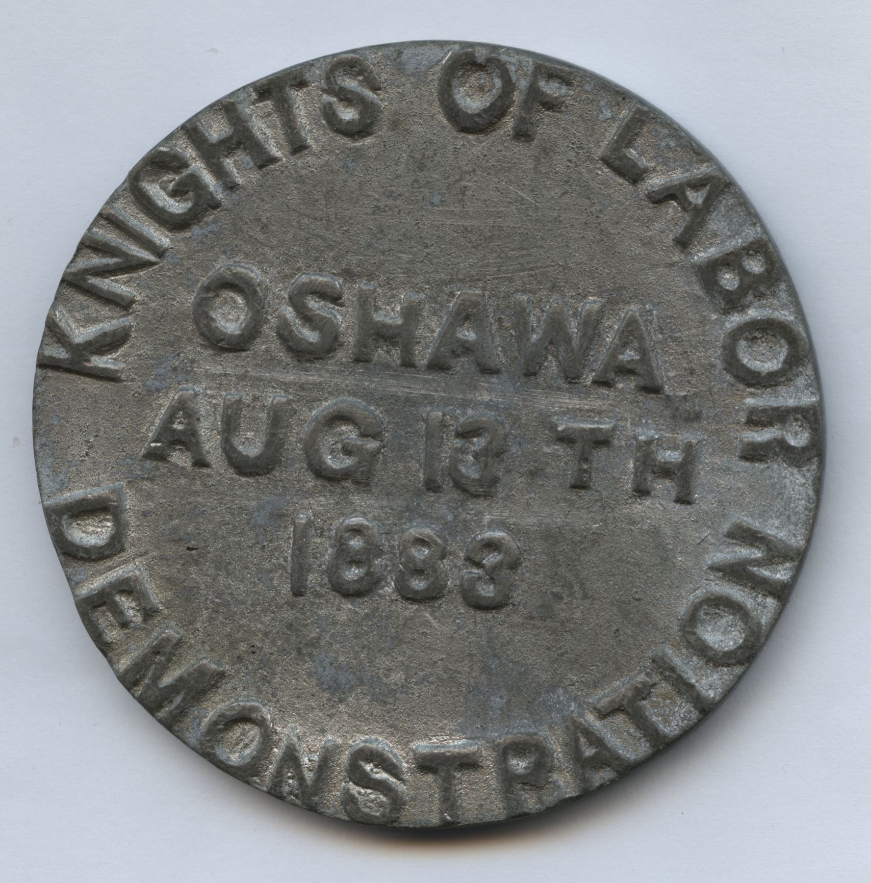 Charlton-1990-5. 75.6mm. 60.5g. Plain edge. Cast by Joseph Hall Iron Works. Commemorating the Knights of Labour demonstration in Oshawa on August 13, 1883. A well-preserved early Canadian labour medal in virtually as-made condition.