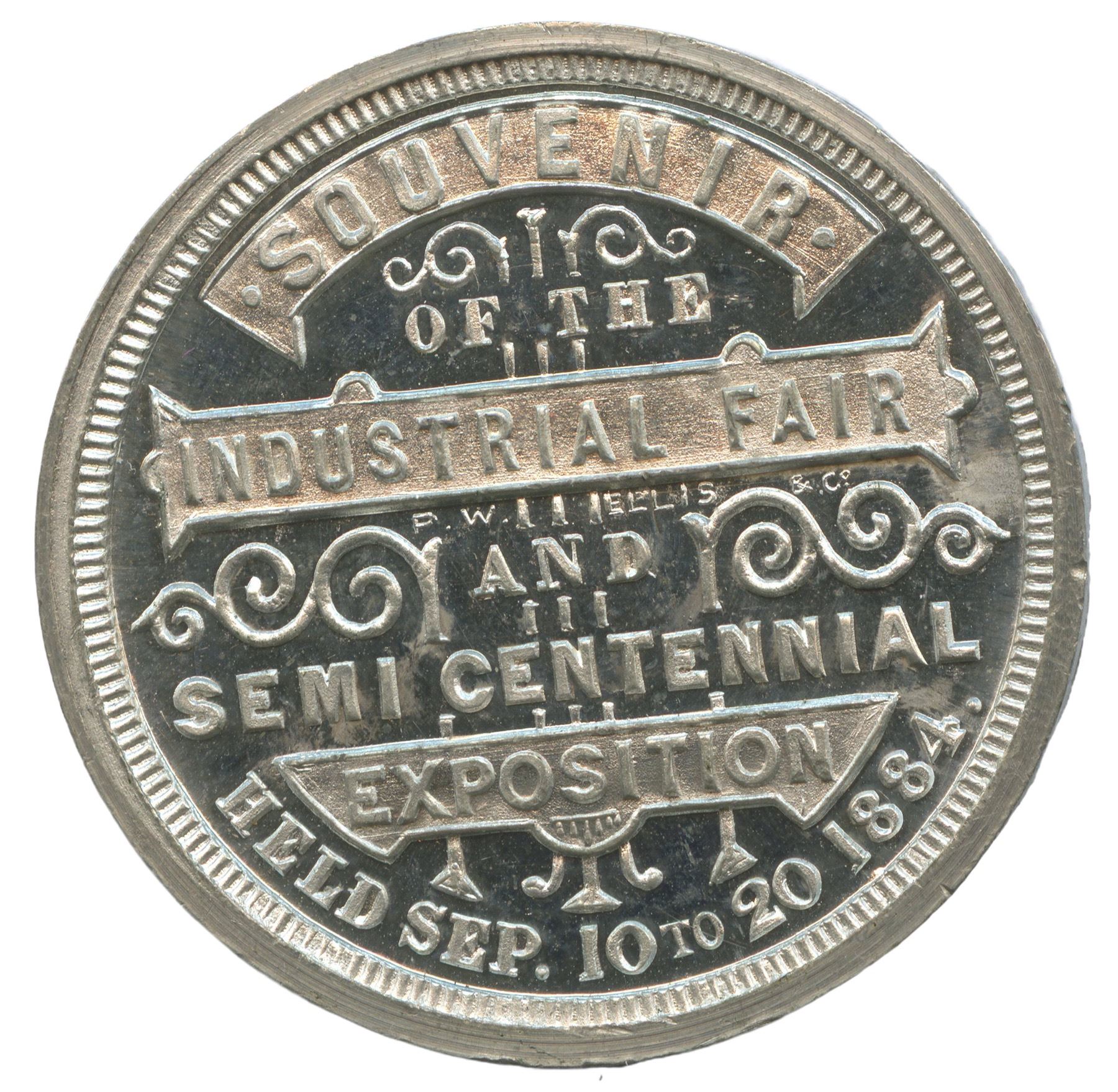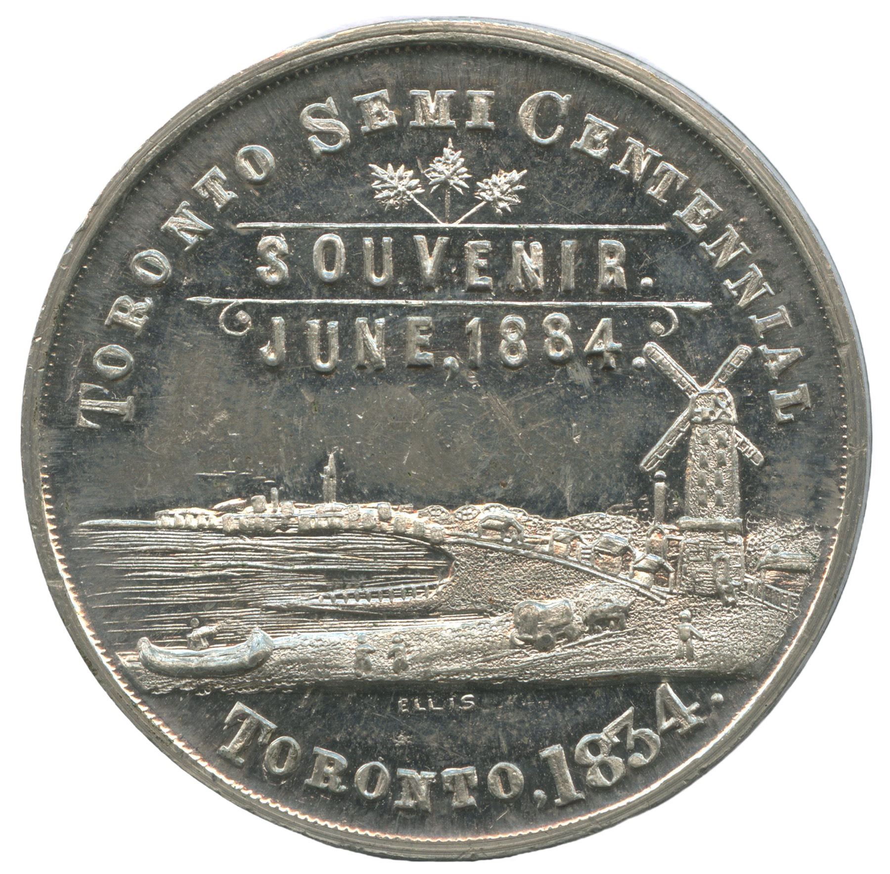 Lr. 1509/1819 Mule — Toronto Semicentennial / Industrial Fair Souvenir. 1884. White Metal. Charlton-EONS-81. 31.7mm. 8.9g. Plain edge. Signed P.W. ELLIS & CO. Reverse of Lr. 1819 combined with the reverse of Lr. 1509. Totally brilliant.