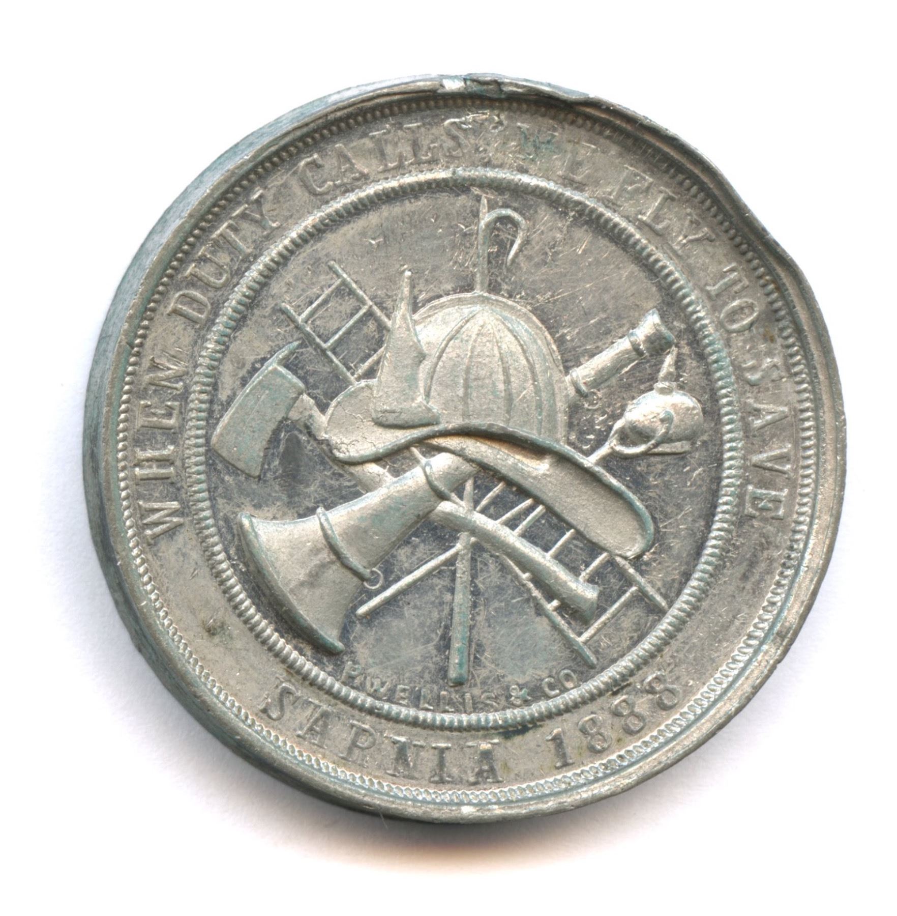 Charlton-EONC-75. 32.2mm. 12.88g. Plain edge. Signed P.W. Ellis & CO. The Grand International Firemen’s Tournament took place on August 16 and 17, 1888 — just a few weeks after the Berlin tournament. Silver-grey surfaces are somewhat flashy, and a couple of small edge bumps are noted.