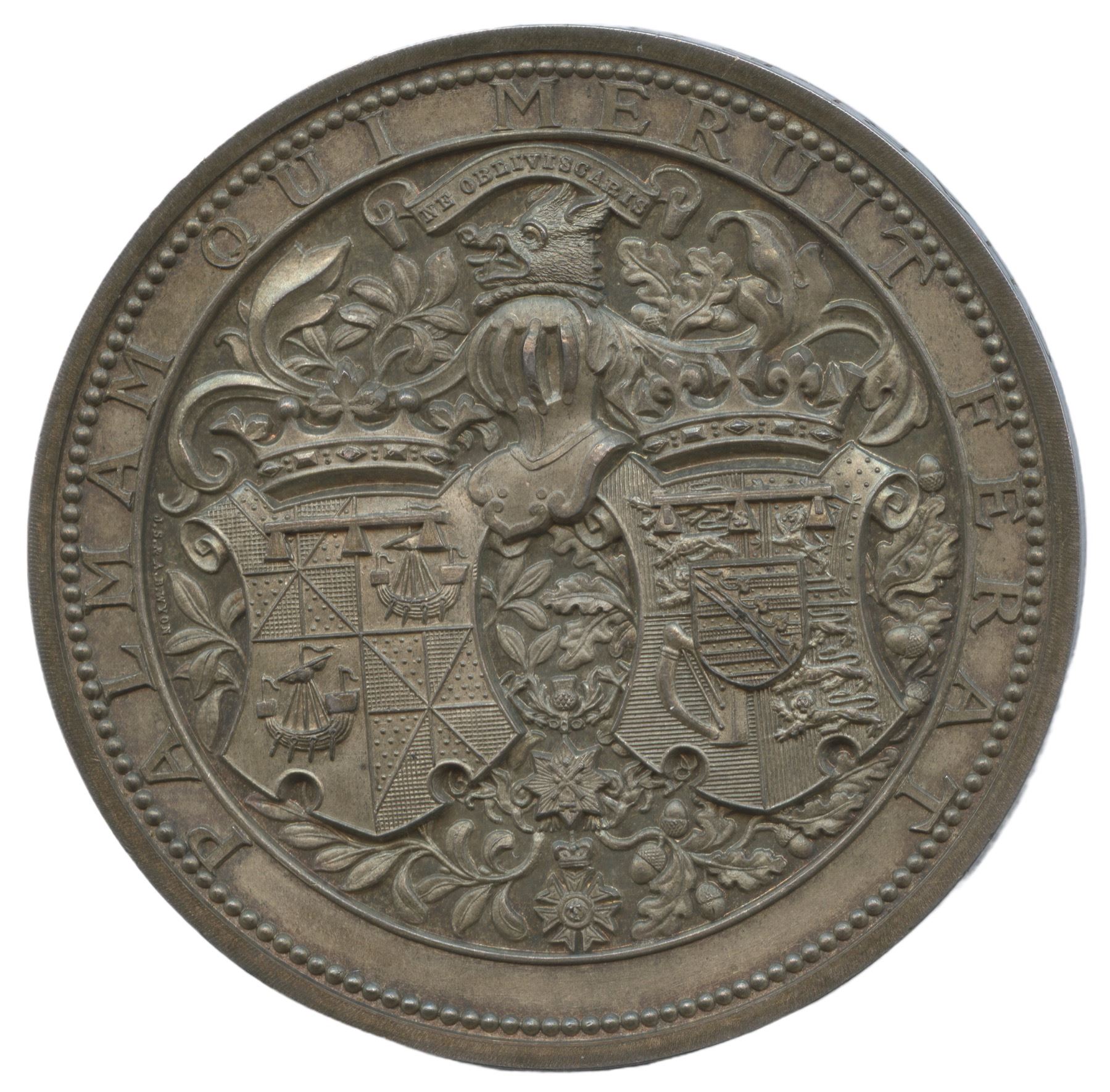 McLachlan-481, Breton-94, Clowery-103. 51.3mm. 72.5g. CHARLES R. DAOUST engraved edge. Signed J.S. & A.B. WYON. As last, but in silver and named. Charles R. Daoust (1865-1924) was a prominent journalist, military correspondent and translator, and the author of Cent-Vingt Jours de Service Actif: Récit Historique Très Complet de la Campagne du 65ème au Nord-Ouest (1886). He studied at Collège Saint-Sulpice, Montreal High School, and McGill University. The surfaces of this silver medal are gorgeously toned in natural golden colour around the rims, which transitions to blue and violet in the fields. Unworn with only a couple of microscopic marks.