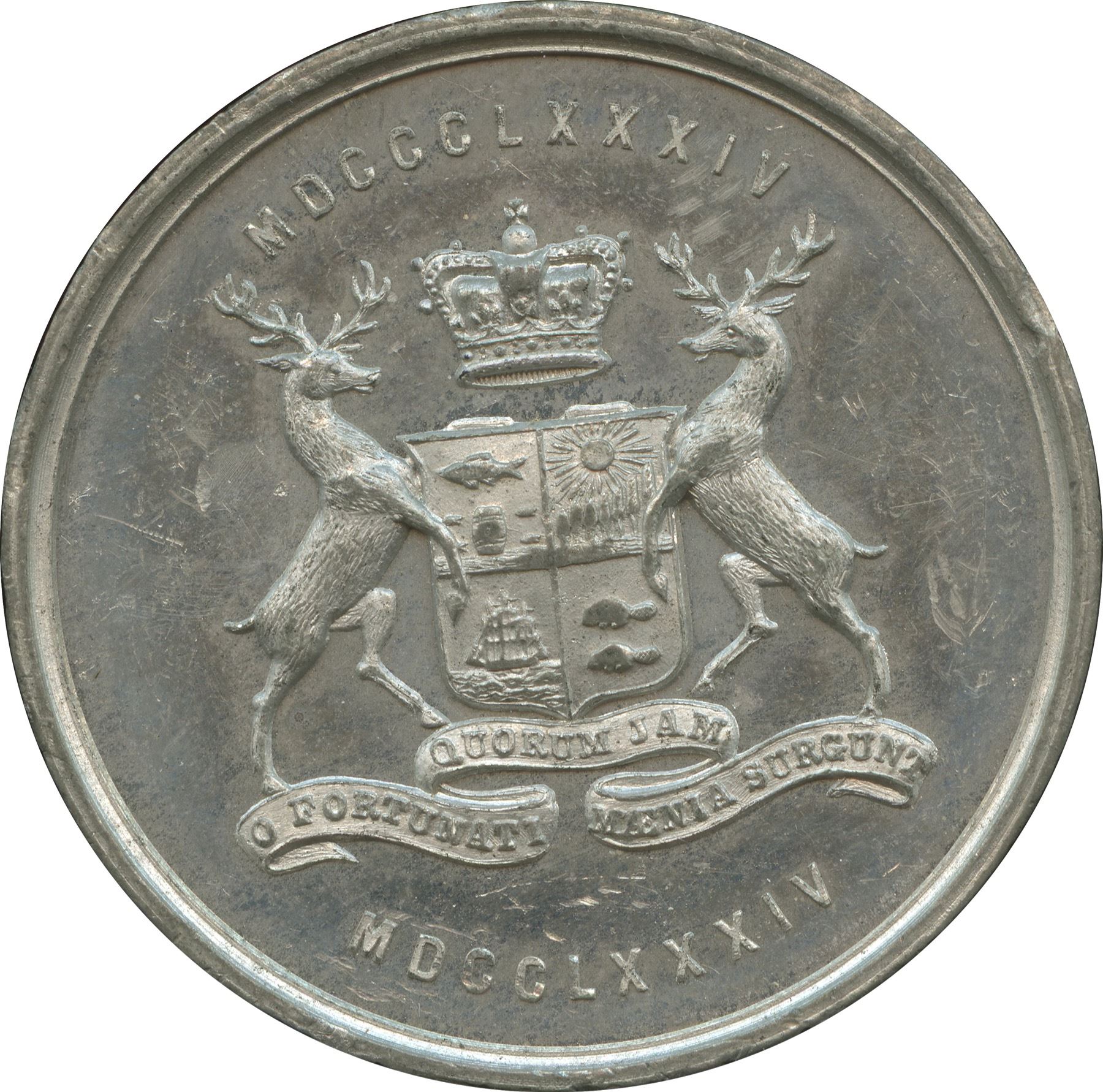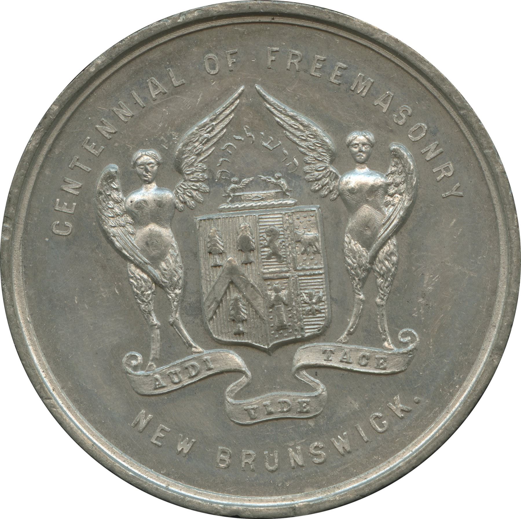 Lr. 1575 — Centennial of Freemasonry - New Brunswick. 1884. White Metal. McLachlan-407. 34.9mm. 15.3g. Plain edge. Unsigned. As last, but in white metal. Prooflike with minor abrasions. Scarce.