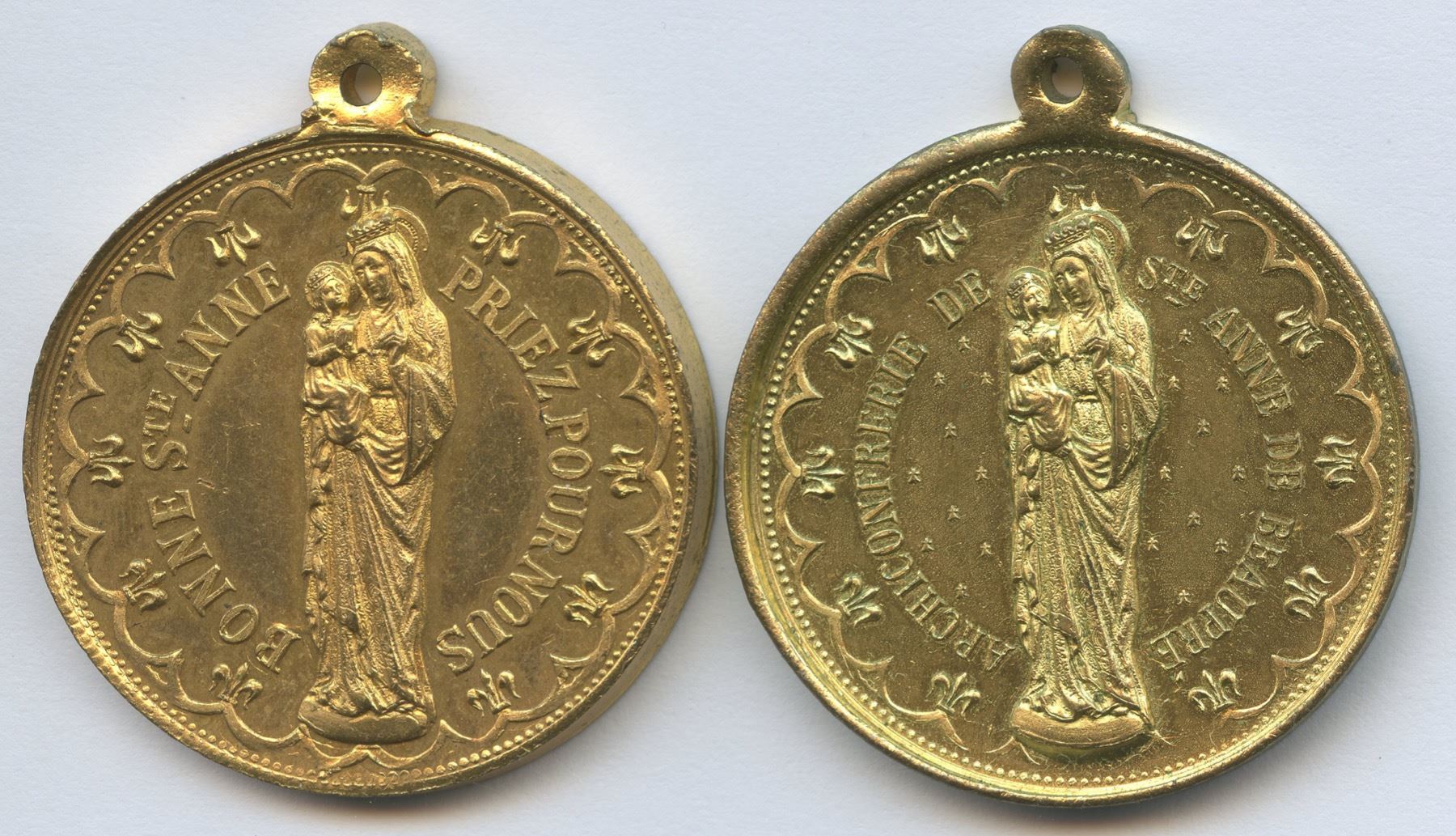 Lot of two. Each 32mm with plain edges, signed S.R., with integrated loops. 1.) Lr. 1702. 15.1g. Yellow-gold colour. Struck on an uneven planchet. 2.) Lr. 1703. 13.6g. Similar to preceding. Bright lemon-gold surfaces.