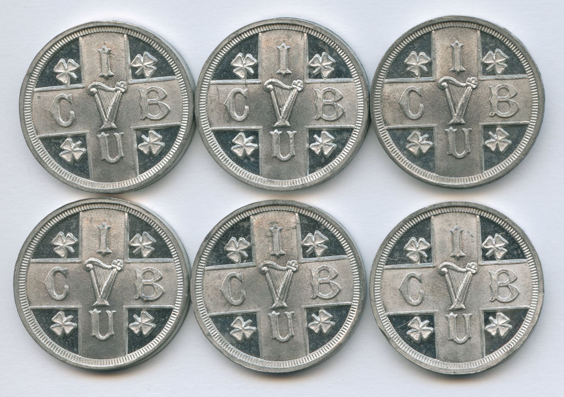 Lot of six (6) medals. Each 31.5mm with plain edges. All are brilliant and prooflike. 1.) Lr. 1830 (obverse) / Lr. 1335 (obverse), Charlton-1935-20. 1884. 11.53g. Signed P.W. ELLIS & CO. 2.) Lr. 1830 (obverse) / Lr. 1509 (obverse), Charlton-1935-25. Undated. 9.58g. Unsigned. 3.) Lr. 1830 (obverse) / Lr. 1622 (obverse), Charlton-1935-30. Undated. 10.10g. Signed P.W. ELLIS & CO. 4.) Lr. 1830 (obverse) / Lr. 1790 (reverse), Charlton-1935-40. Undated. 14.93g. Unsigned. 5.) Lr. 1830 (obverse) / Lr. 1819 (reverse), Charlton-1935-50. 1884. 10.82g. Signed ELLIS. 6.) Lr. 1830 (obverse) / Blank, Charlton-1935-15. Undated. 10.43g. Unsigned. This is a remarkable grouping that should command a strong premium bid. Almost never offered together.