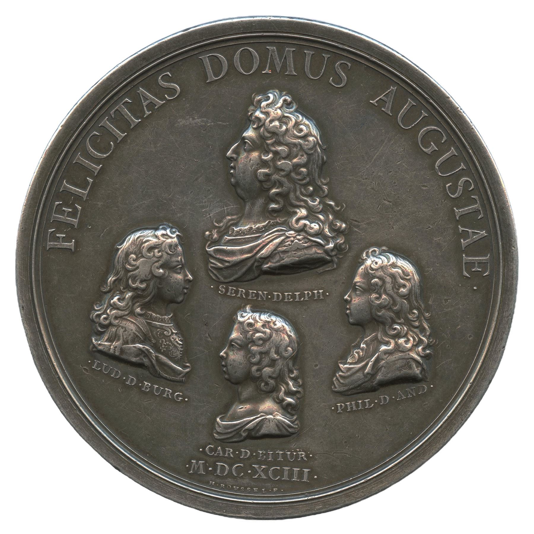 This is the ultimate highlight of the Michael Joffre Collection of Canadian Historical Medals. Indeed it is the first time since 2009 that any large-size silver original of the 1693 Louis XIV Dynastic medal has been offered, and only the second time in the last three decades. Truly a once-in-a-generation opportunity for the most advanced Indian peace medal collectors and French Regime specialists.