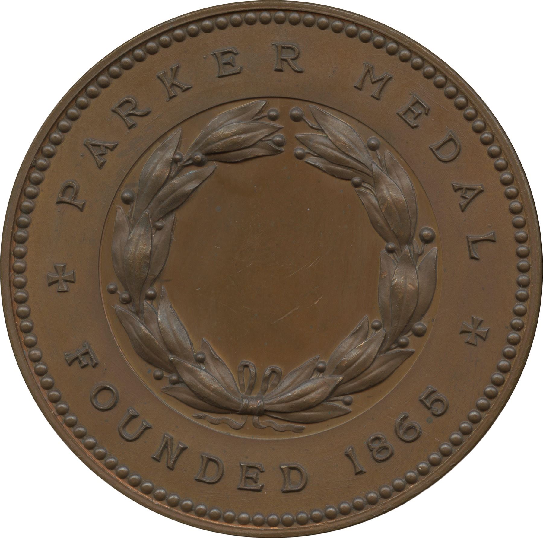 Breton-159. 50mm. 66g. Plain edge. Signed by Allan Wyon. The Parker medal was initially awarded for highest general standing but was later presented for mathematics. This is an unnamed example in copper. The central fields are prooflike, contrasting against the portrait and wreath. A glossy and unworn Wyon medal with only a few microscopic ticks, likely struck during the late-19th or early-20th century.