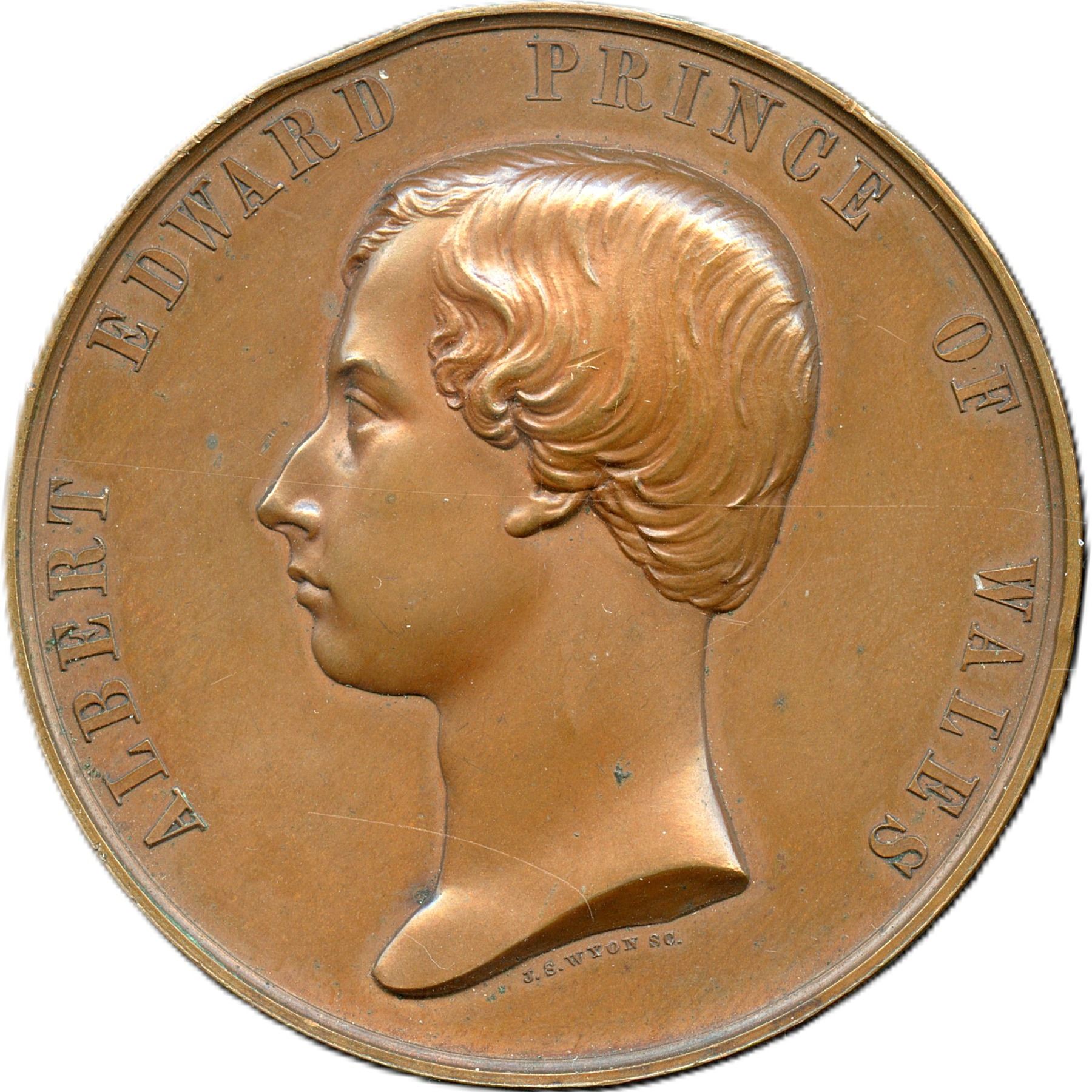 Br. 174, McLachlan 137. 48mm. 62.1g. Plain edge. Signed J.S. WYON. Overall pleasing example, showing specks of green verdigris on obverse and reverse, one edge bump at D in Edward, EF. 1pc. From the Geoffrey Bell Collection.