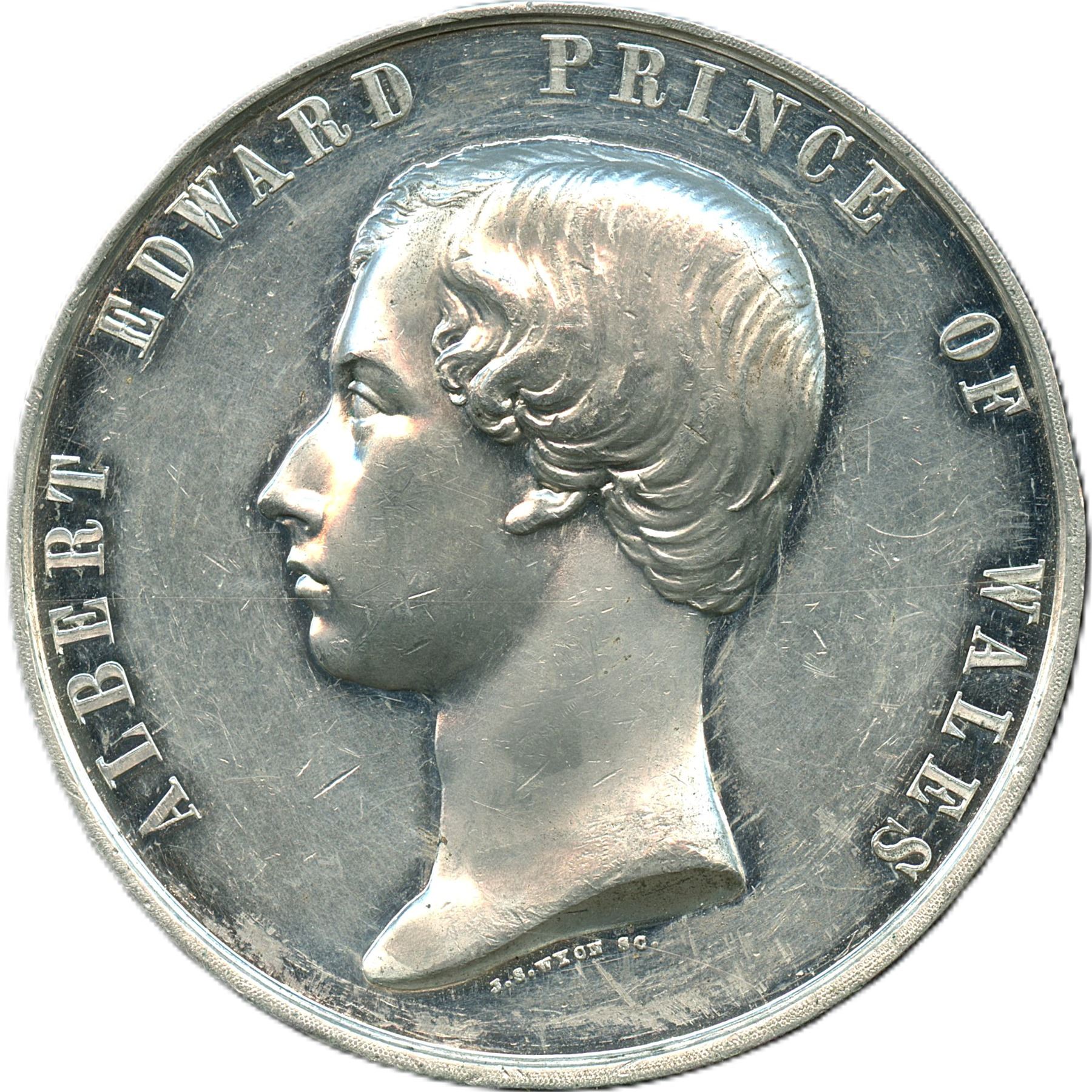 Br. 174, McLachlan 137. 48mm. thick planchet (4.2mm), 45.6g. Plain edge. Signed J.S. WYON. Several contact marks are present, fields are very reflective, EF. 1pc. Ex. Hoare Auctions Sale #51 October 28, 1995 Lot 1455, Saul Hendler Medal Collection Part 1. From the Geoffrey Bell Collection.