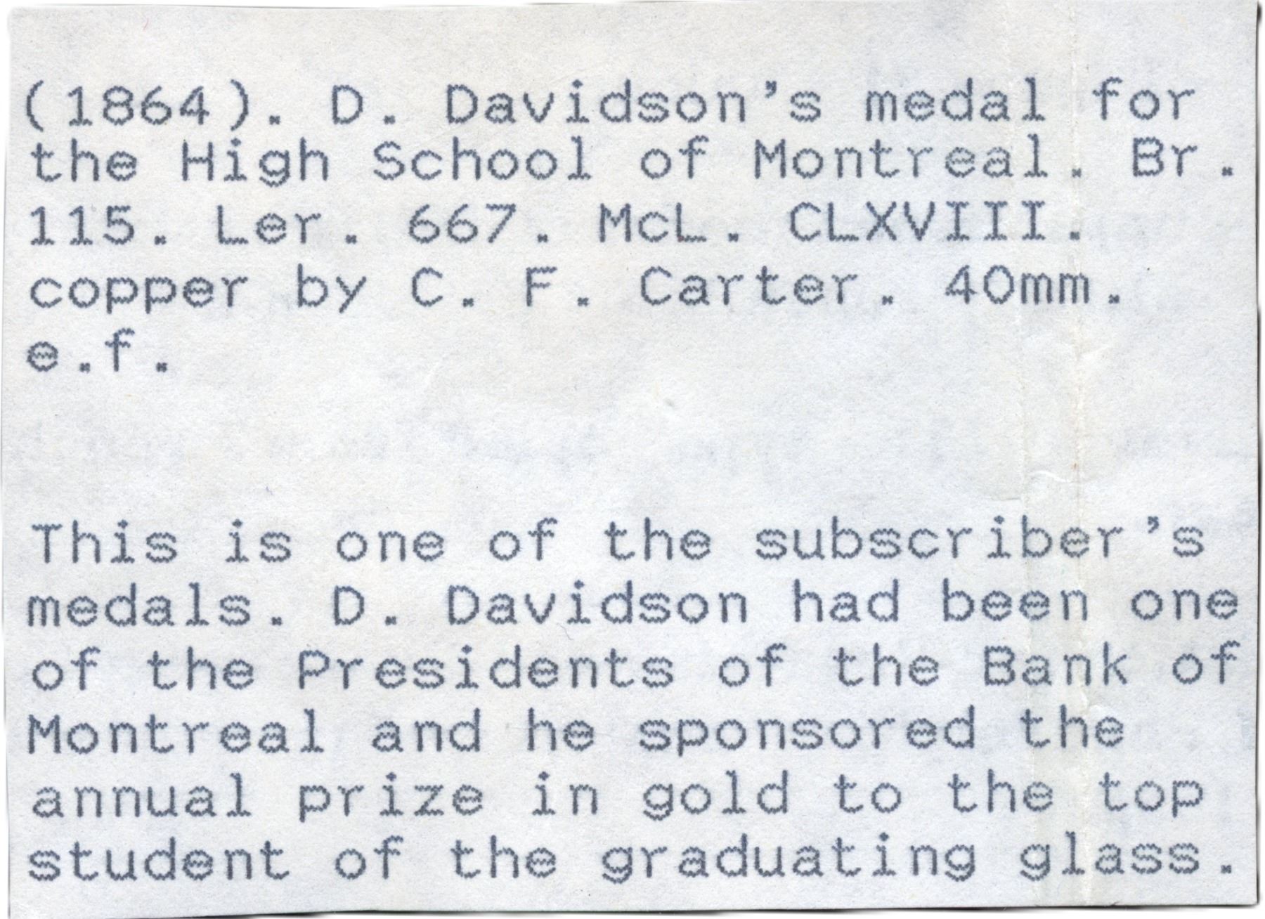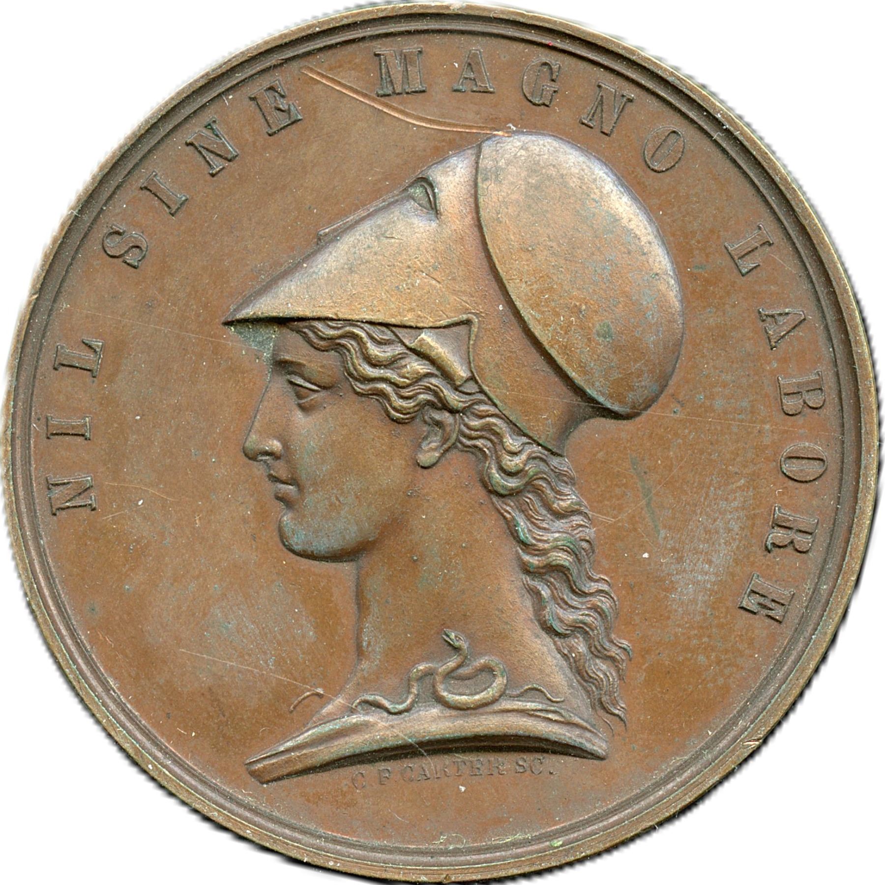 40.8mm, 38.8g, Br. 115. Undated, Plain edge. Signed C.F. Carter SC, Heavy scratch on obverse, dull surfaces with areas of green verdigris, EF. 1pc. From the Geoffrey Bell Collection.
