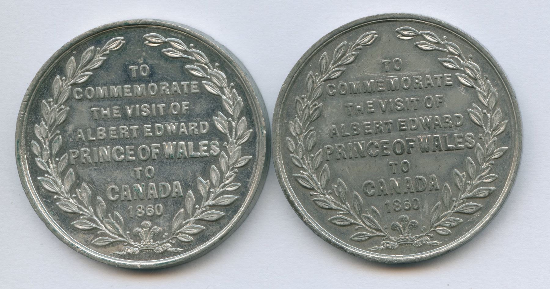 McLachlan-301. Breton-178. Lot of two (2) medals. Both 43.7mm, 20.8g. Plain edges and unsigned. One is flashy and reflective with unworn devices, while the other is slightly more muted with a trace of friction. Clean rims and appealing for the type. These souvenir medals were struck in Birmingham and commissioned by Montreal jewellers Savage & Lyman.