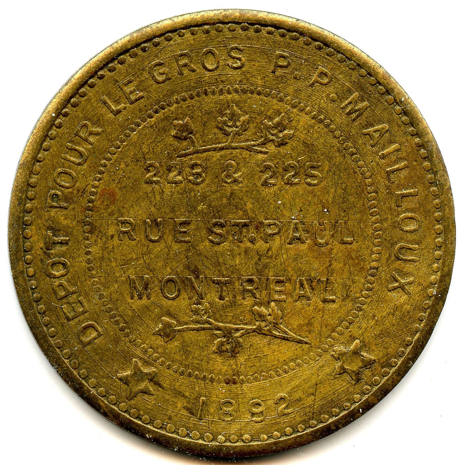 Breton 643, LeRoux 1070d, Montreal, Brass, 111 issued, 33mm, 10.94g, EF; Breton 644, LeRoux 1070f, Montreal, Brass, 111 issued, 33mm, ICCS MS-60; Breton 645, LeRoux 1070b, Montreal, Brass, 111 issued, 33mm, 10.92g, EF; Breton 646, LeRoux 1070h, Montreal, Brass, 111 issued, 33mm, 10.79g, EF; Breton 647a, McColl 126, Copper, 25mm, 3.68g, EF. 5pcs.
