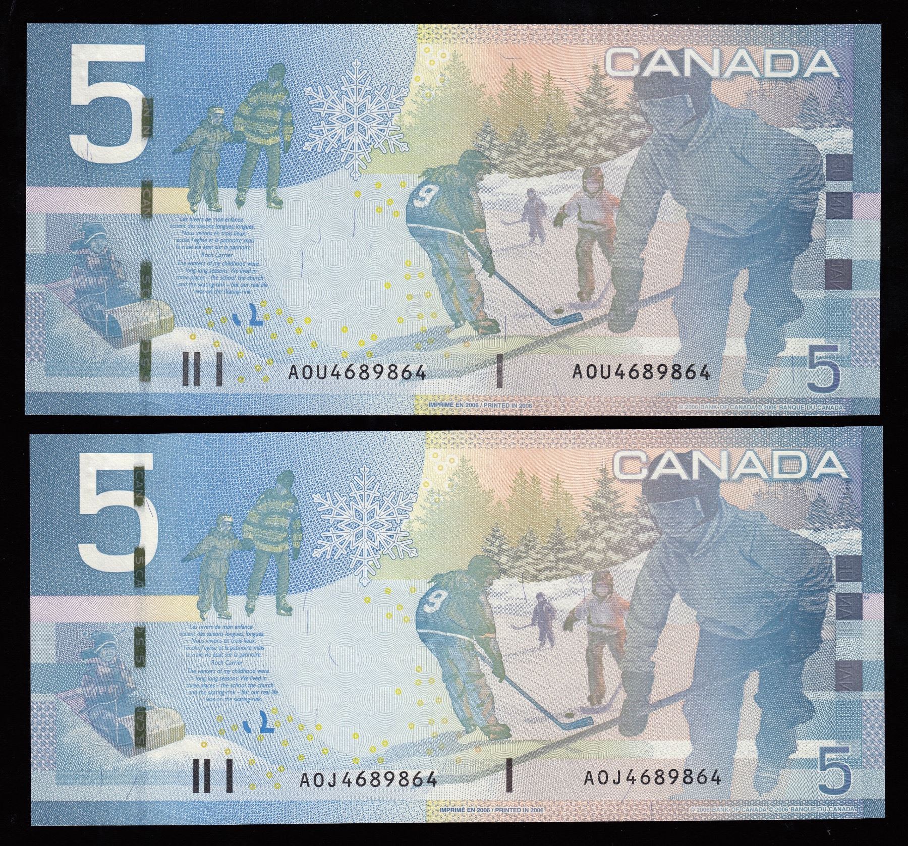 MATCHING NUMBER PAIR - Bank of Canada $5, 2006 Matched Number Radar Set