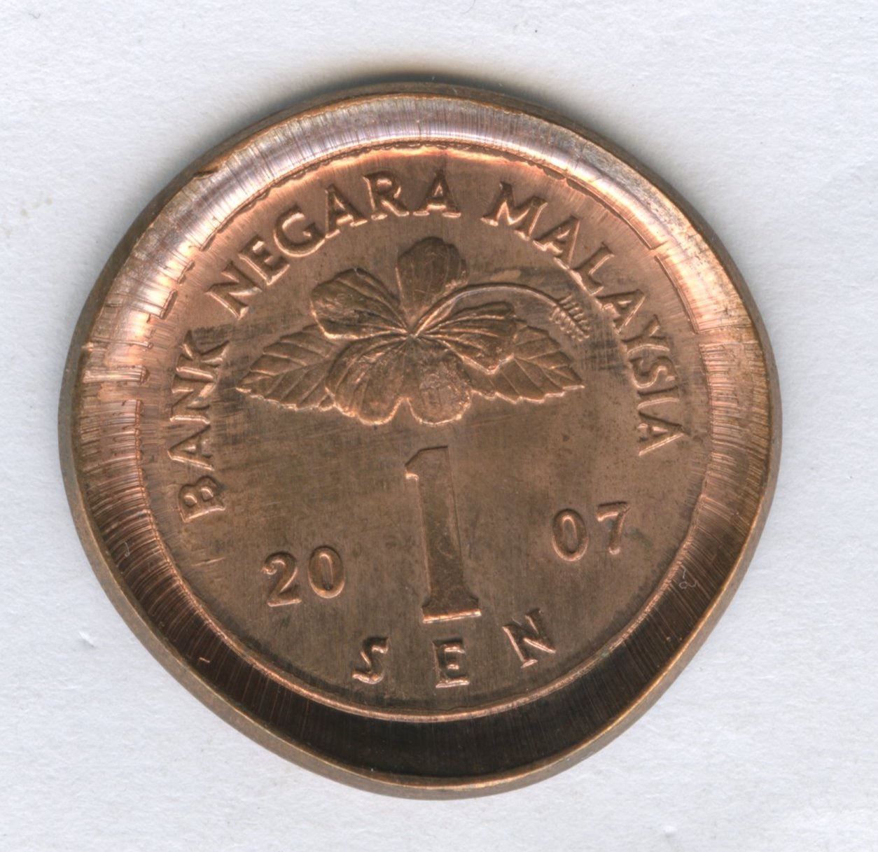 A bright BU Malaysia 1 Sen error, struck through an anvil die cap and no collar die, producing a flared strike with a beautiful early stage full mirror brockage of the reverse (hammer die). A superb error, and must be seen to be appreciated. Patrick Glassford Collection.