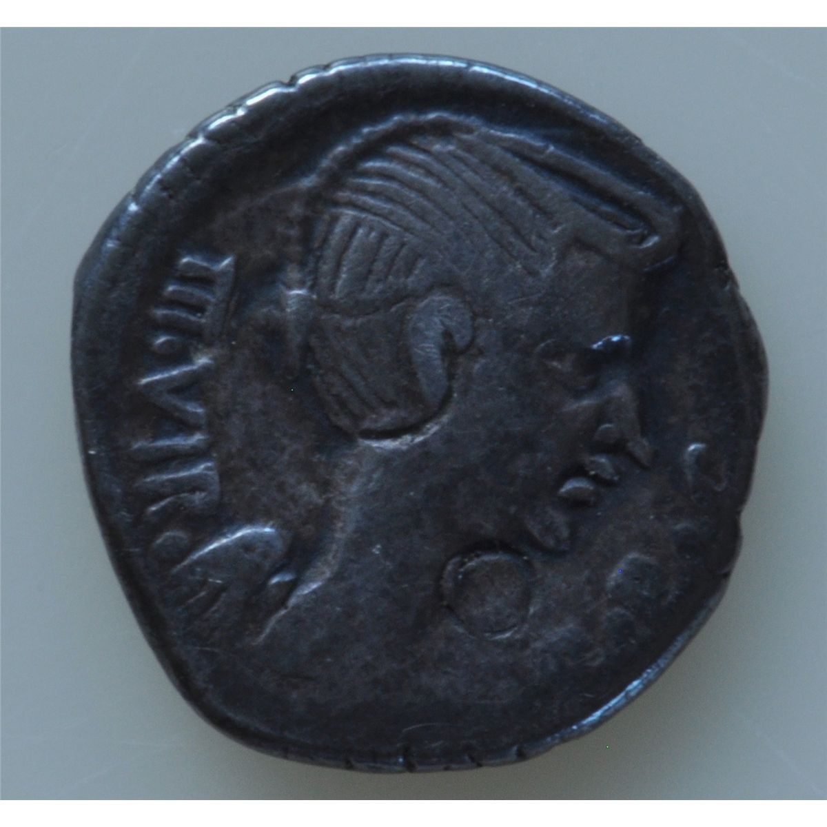 Mark Antony (42 BC) - AR-Quinarius Obv: Winged head of Fulvia r., III VIR R P C Rev: Lion walking r. ANTONI above, IMP below and date numeral A - XLI in field. 1.9 grams S-1519 Craw 489-66. Fine.
