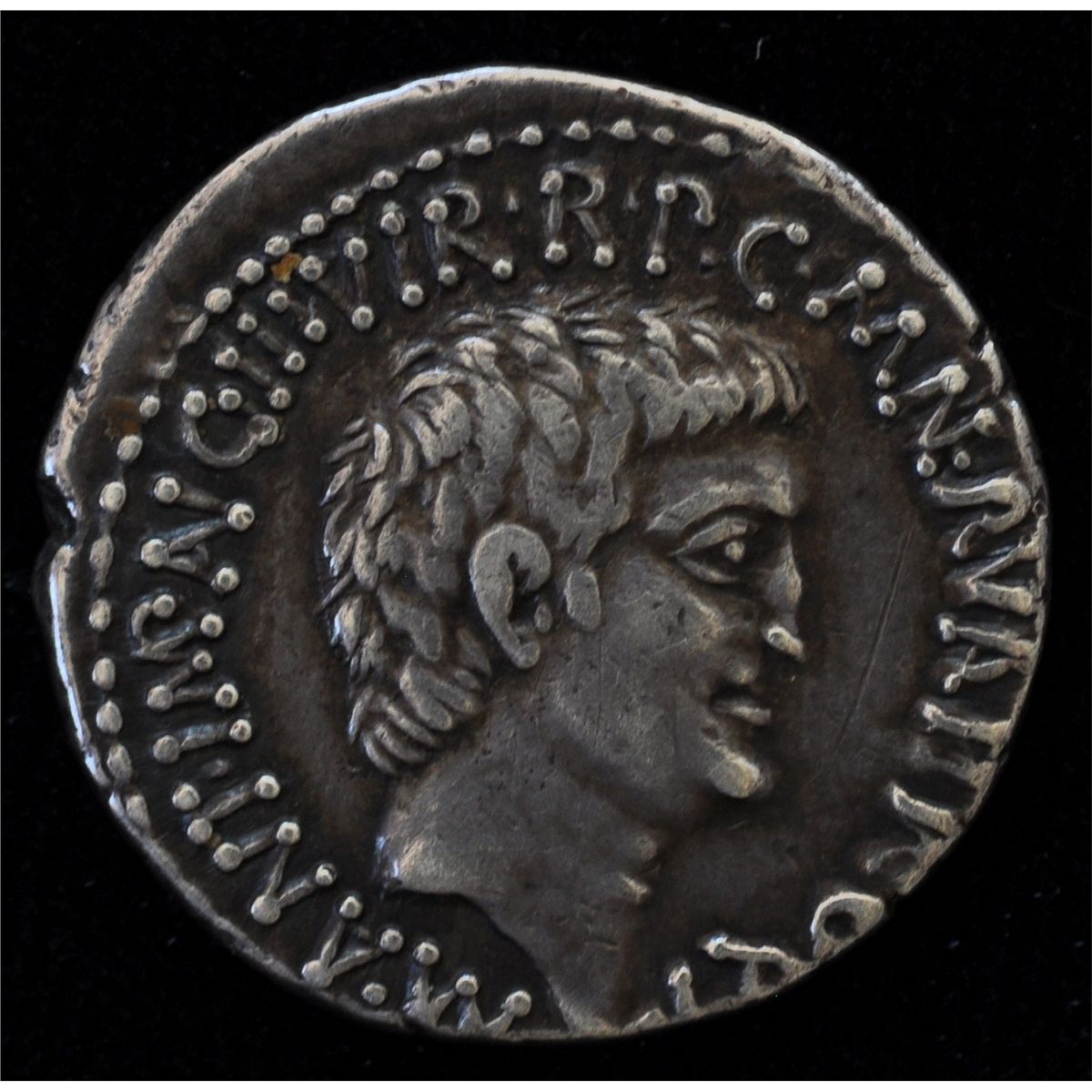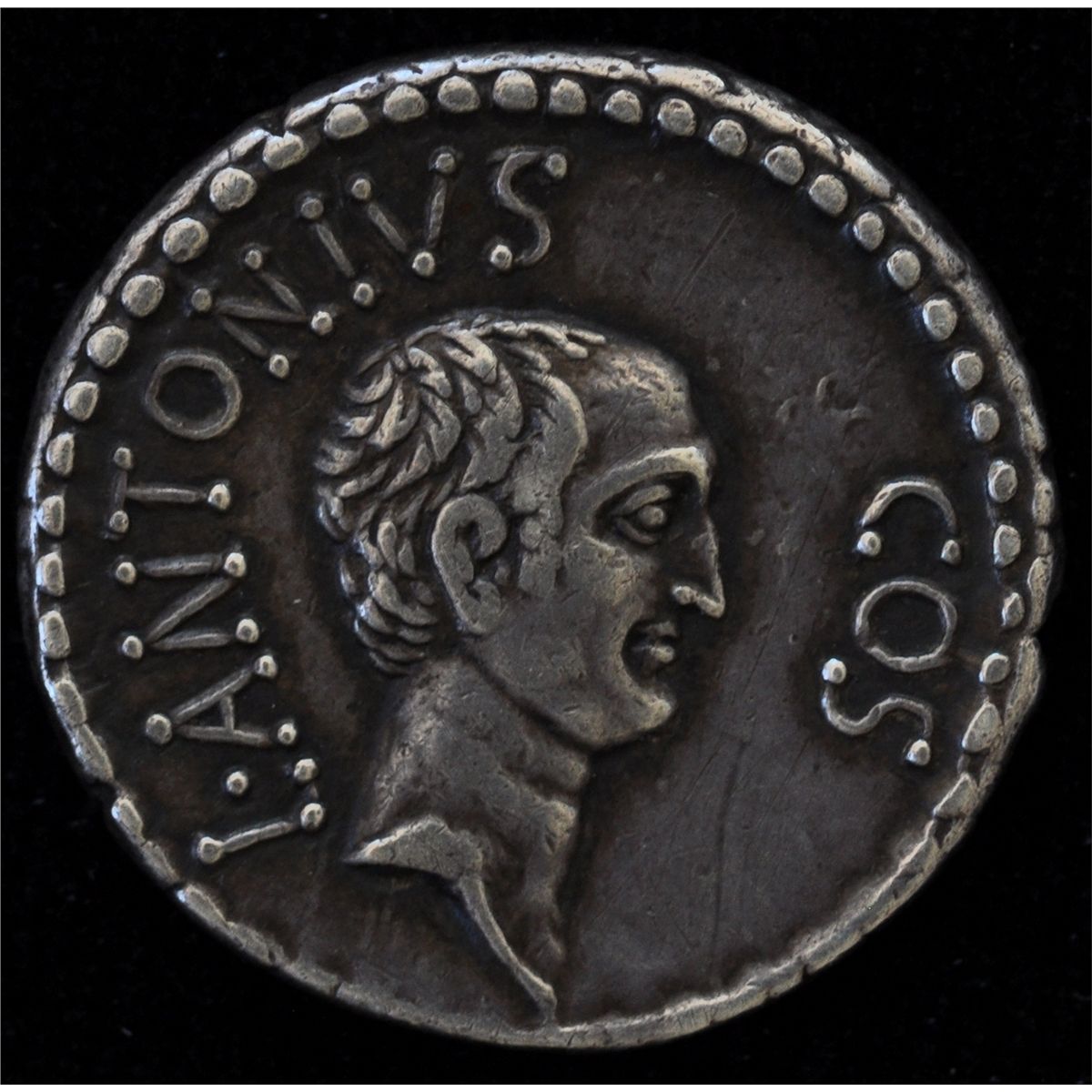 Mark Antony and Lucius Antony (41 BC) - AR-Denarius Obv: Bare head of Mark Antony r., M ANT IMP AVG III VIR RPCM NERVA PROQ P. Rev: bare head of Lucius Antony r. L. ANTONIVS COS. 4.0 grams S-1509 Craw 517-5. Outstanding portrait of Mark Antony. Very Fine.