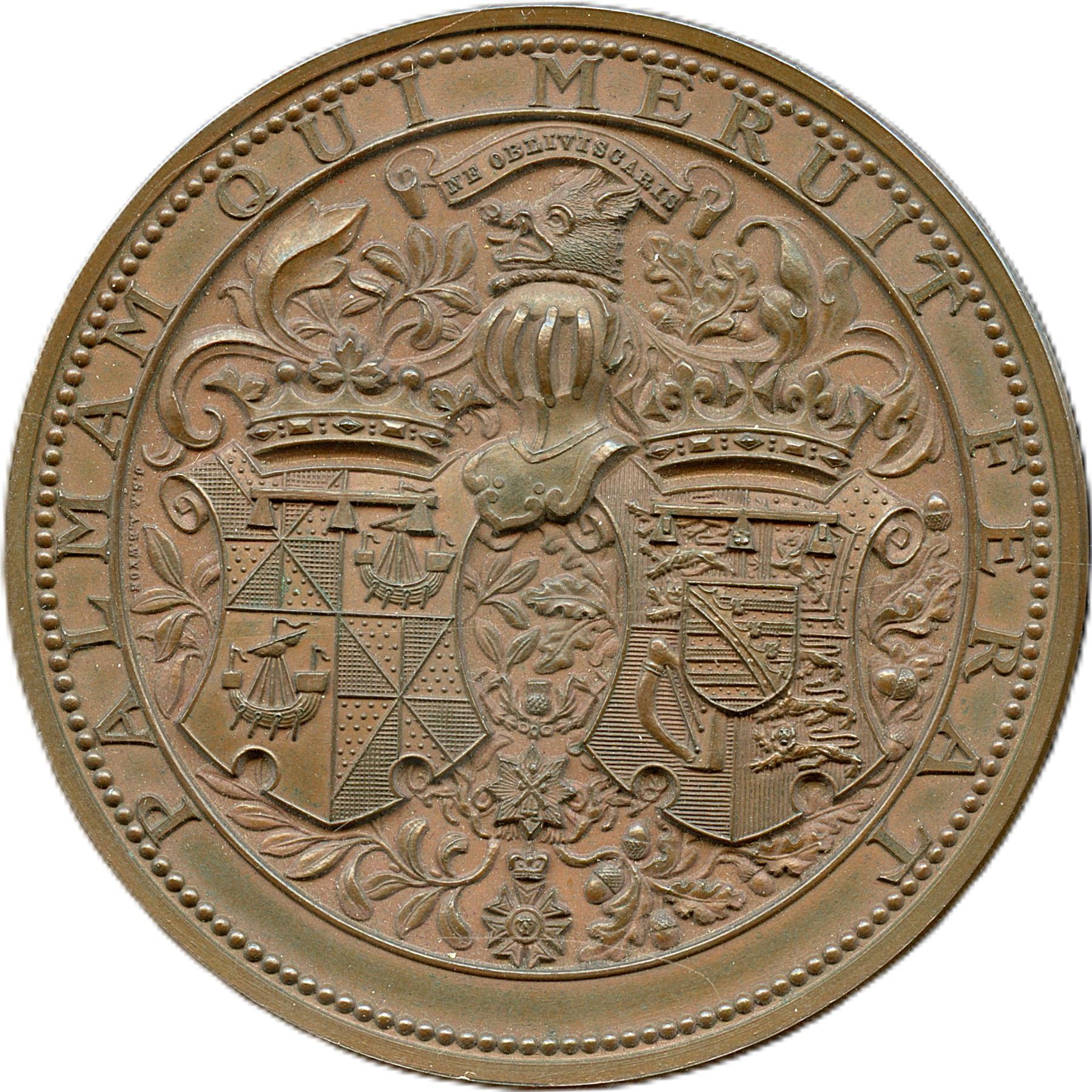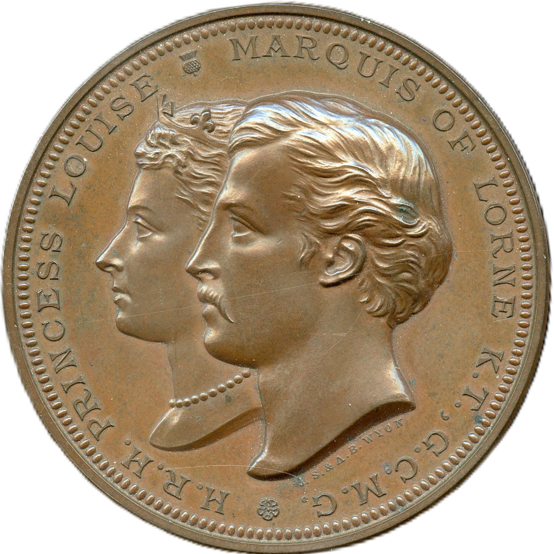 Lr. 1570, McLachlan 481, Br. 94, CL 103. 51.3mm. 72.6g. Plain edge. Signed J.S. & A.B. WYON. John Campbell, 9th Duke of Argyll, served as Governor General from 1878 to 1883. This unnamed copper medal is one of an estimated 300 pieces distributed. Each side is deep brown patina. No obvious high-point rub or contact marks, in original Wyon case. From the Geoffrey Bell Collection.